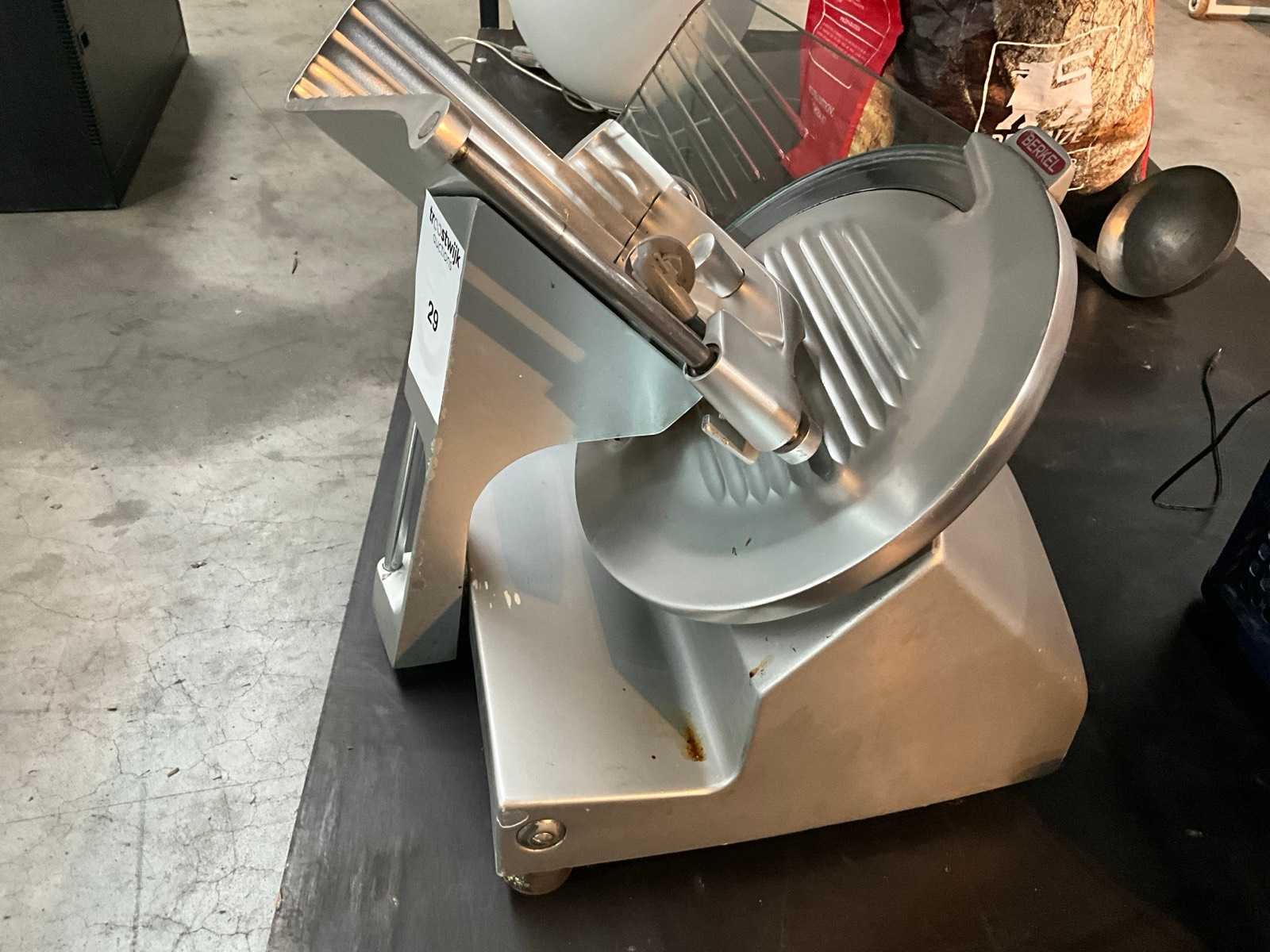 Merk: Berkel Rvs: true Diameter snijblad: 300mm Aansluiting: 220V Totale afmeting L: 55mm Totale afmeting Breedte: 40mm Totale afmeting Hoogte: 40mm