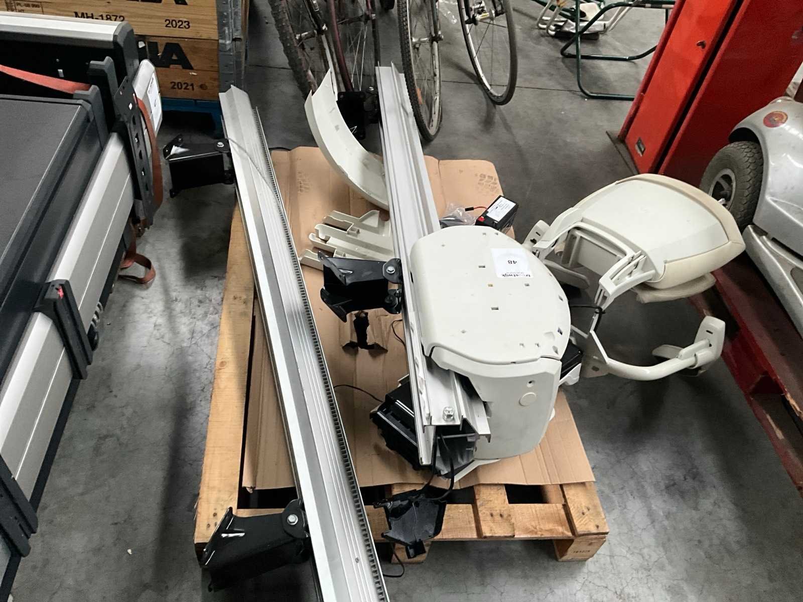 Voorzien van 4 meter rail, motor met zitting, bijhorende tools Merk: Thyssen Krupp