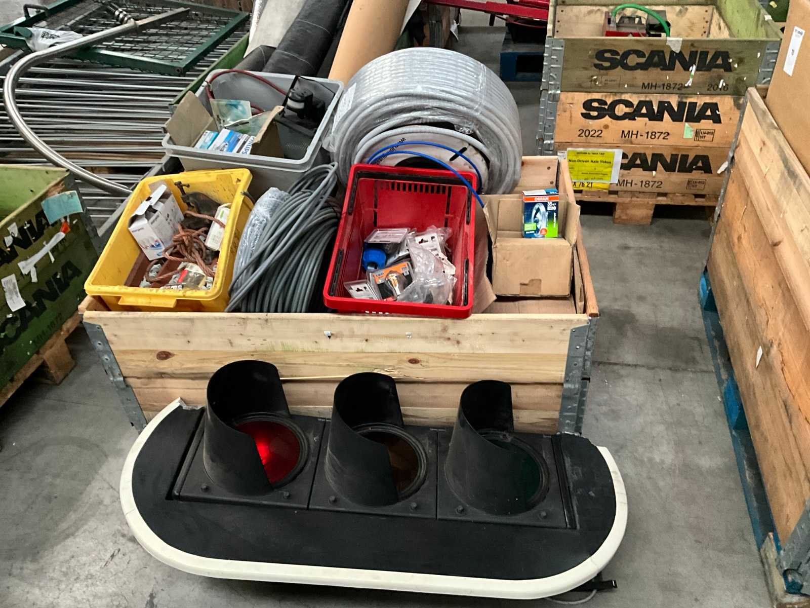 Bestaand uit electrokabel, lichten, lampen, verkeerslicht, enz.., in palletbox