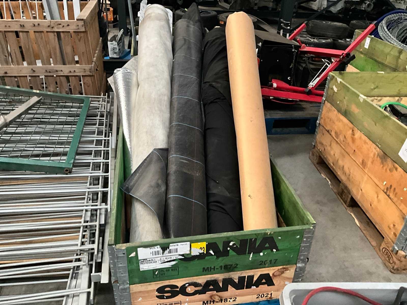 In palletbox, bestaande uit o.a. kruiddoek, stof, grintdoek enz..