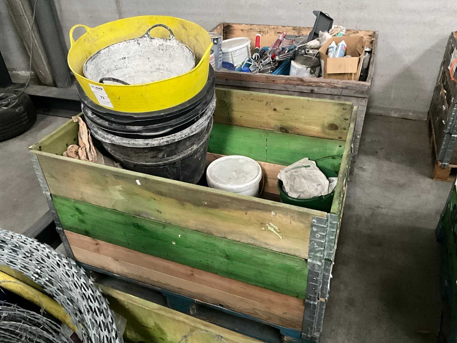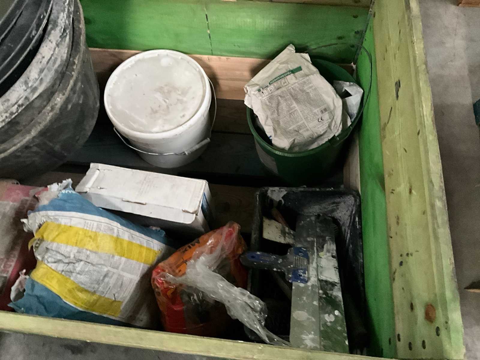 Bestaand uit circa 5 kuipen, + partij diverse plaaster en cement in zakken