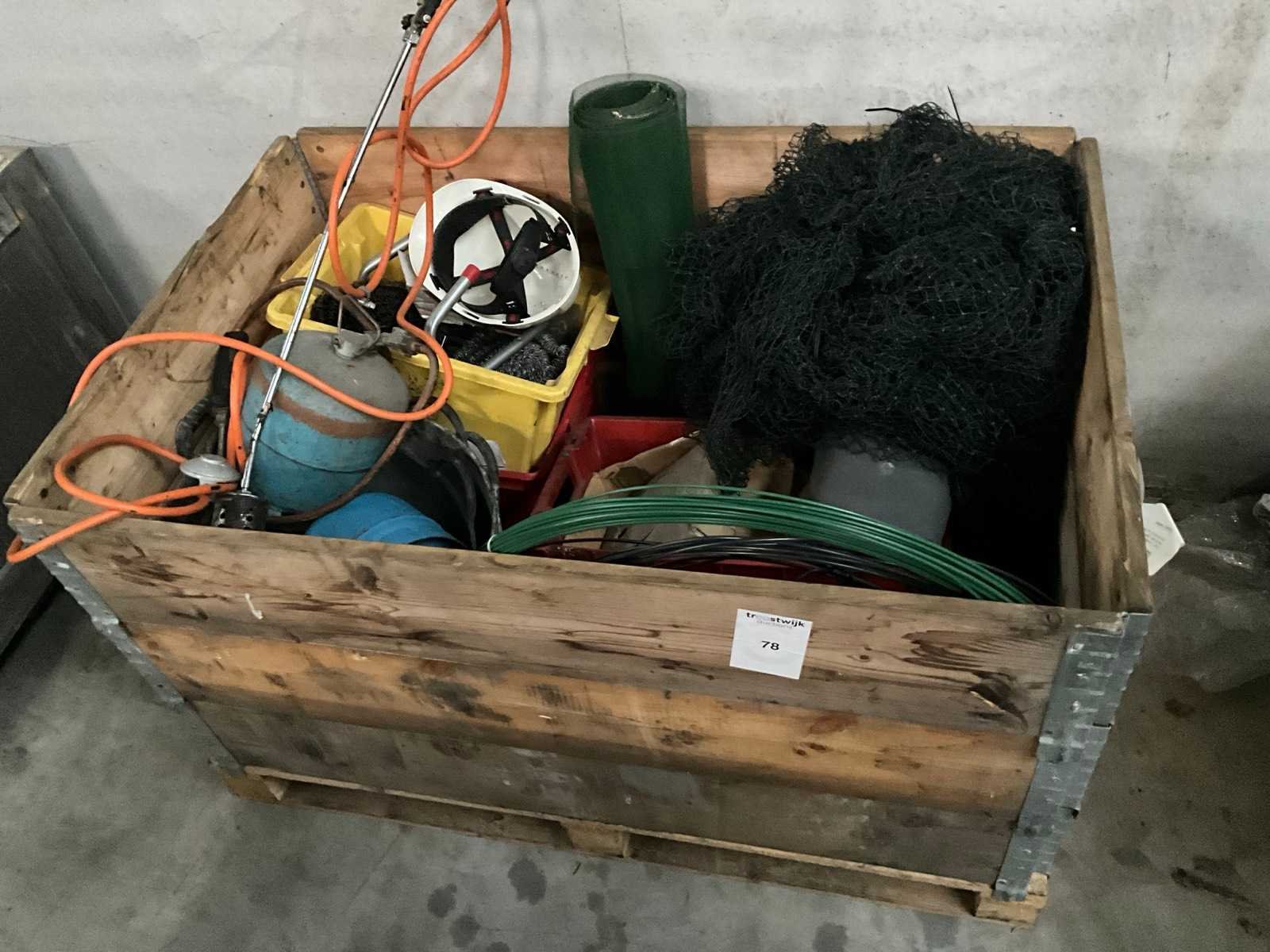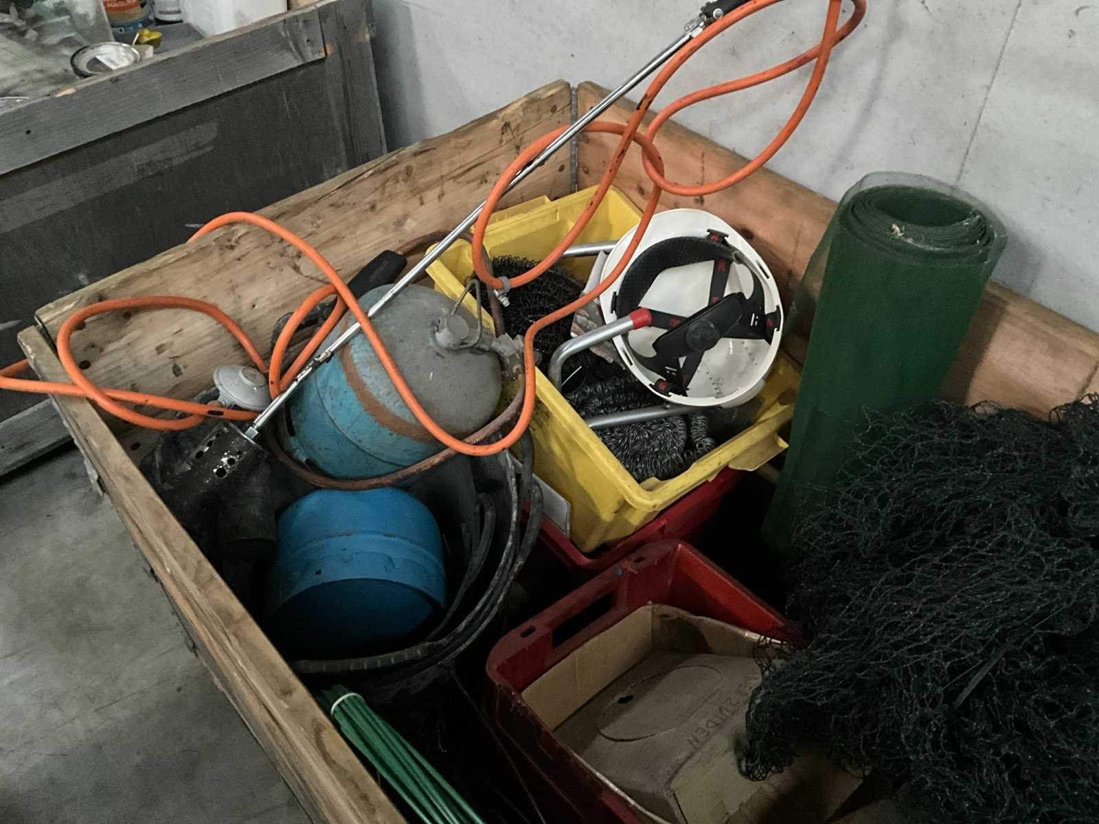 Bestaand uit veiligheidsnet, gasbrander voor dakwerken, veiligheidshelm, spandraad enz.., in palletbox