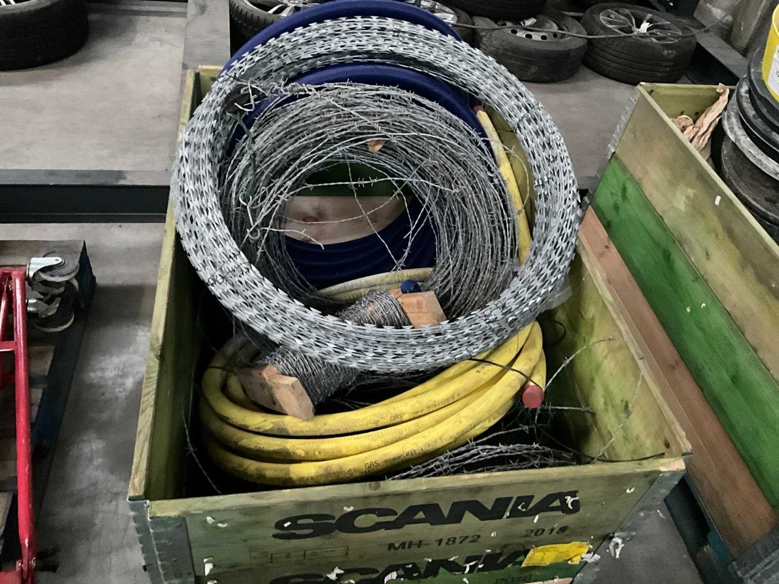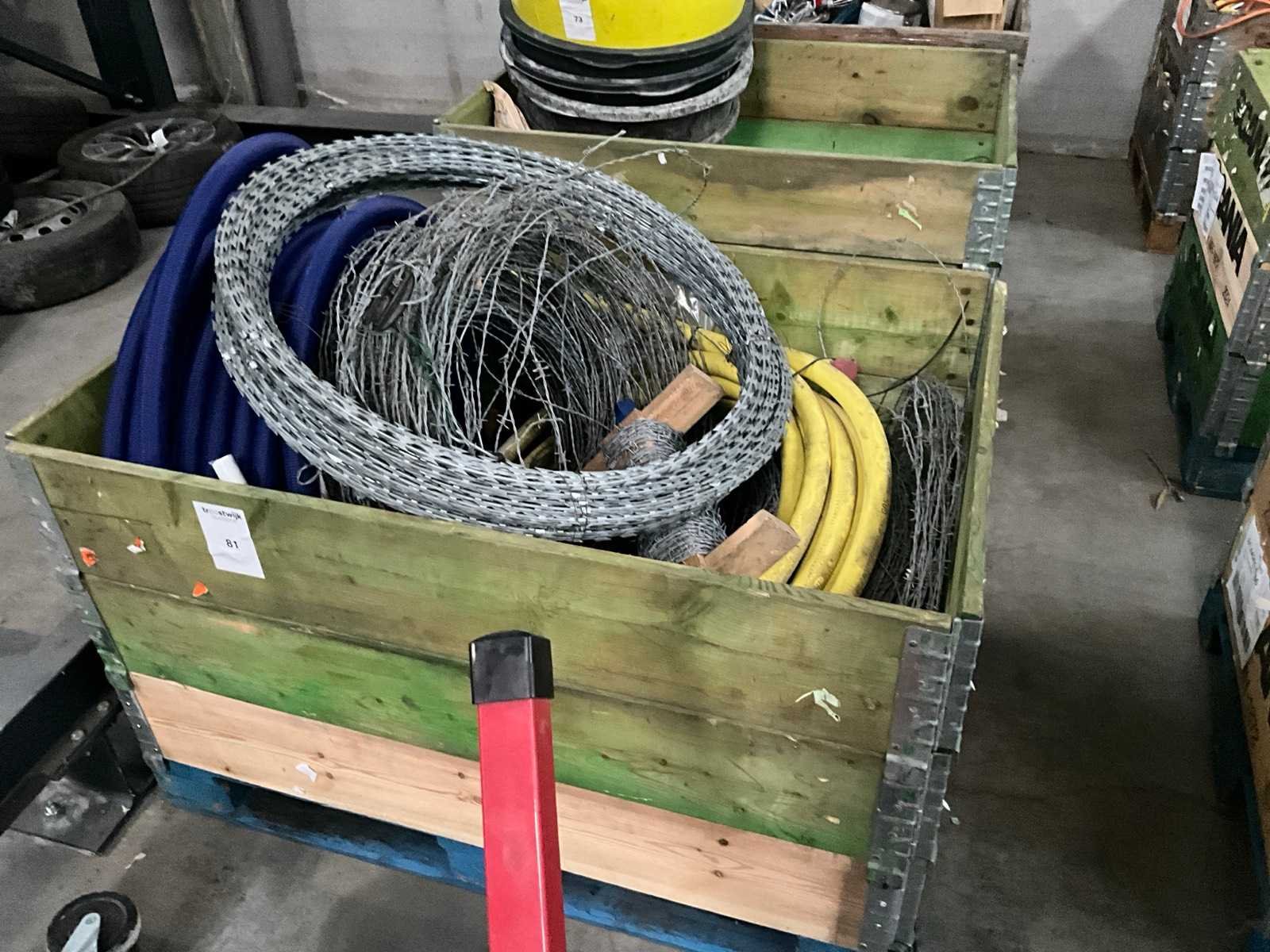 Bestaand uit prikdraad, pvc waterslangen, enz.., in palletbox