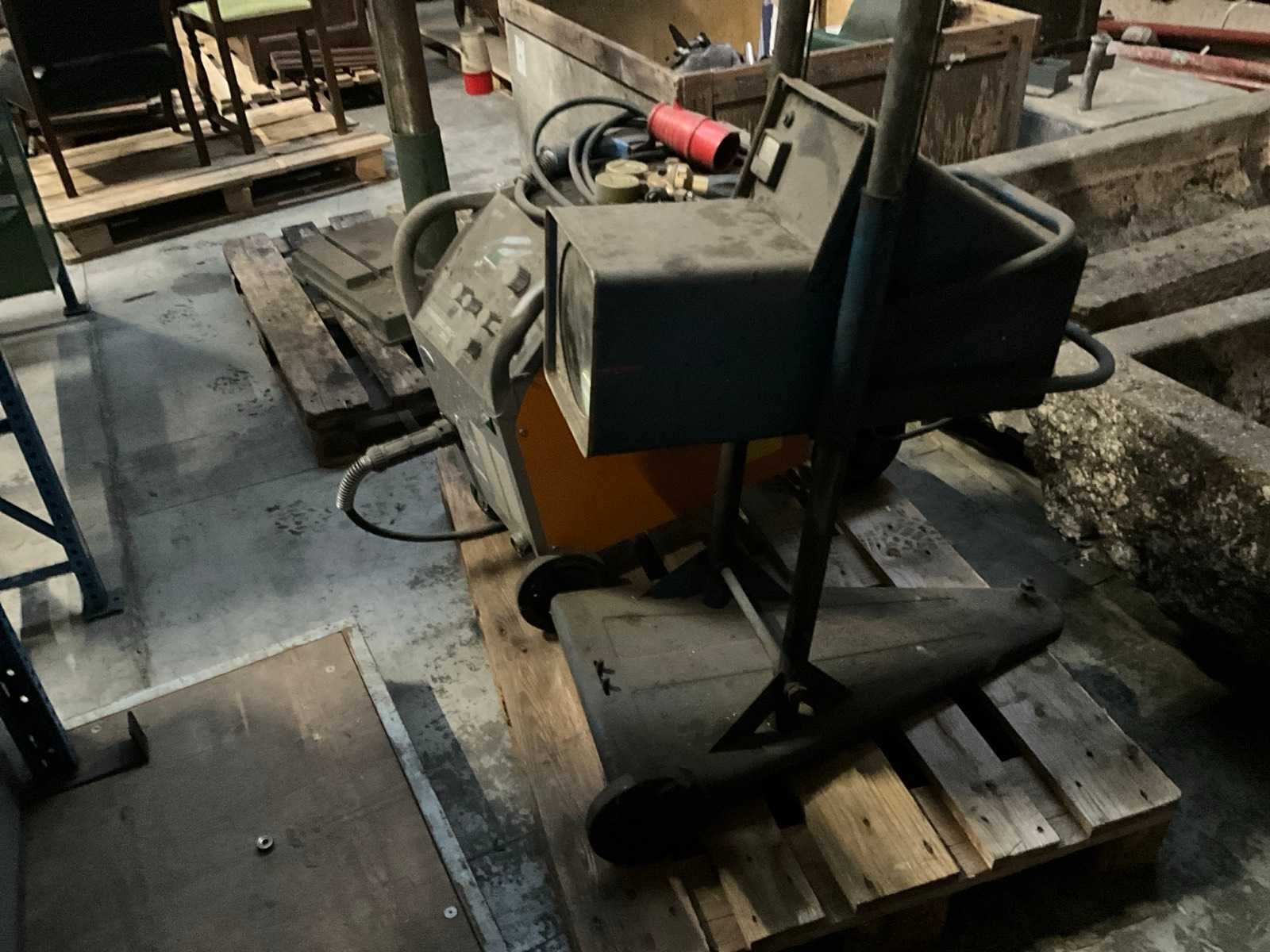 Voorzien van gasdruk regelbare manometer, 3-fase stekker, lastoorts, mobiele opstelling, + Bosch afstel toestel voor koplampen voertuigen Merk: Lastek Type: Synergie pro 280-4