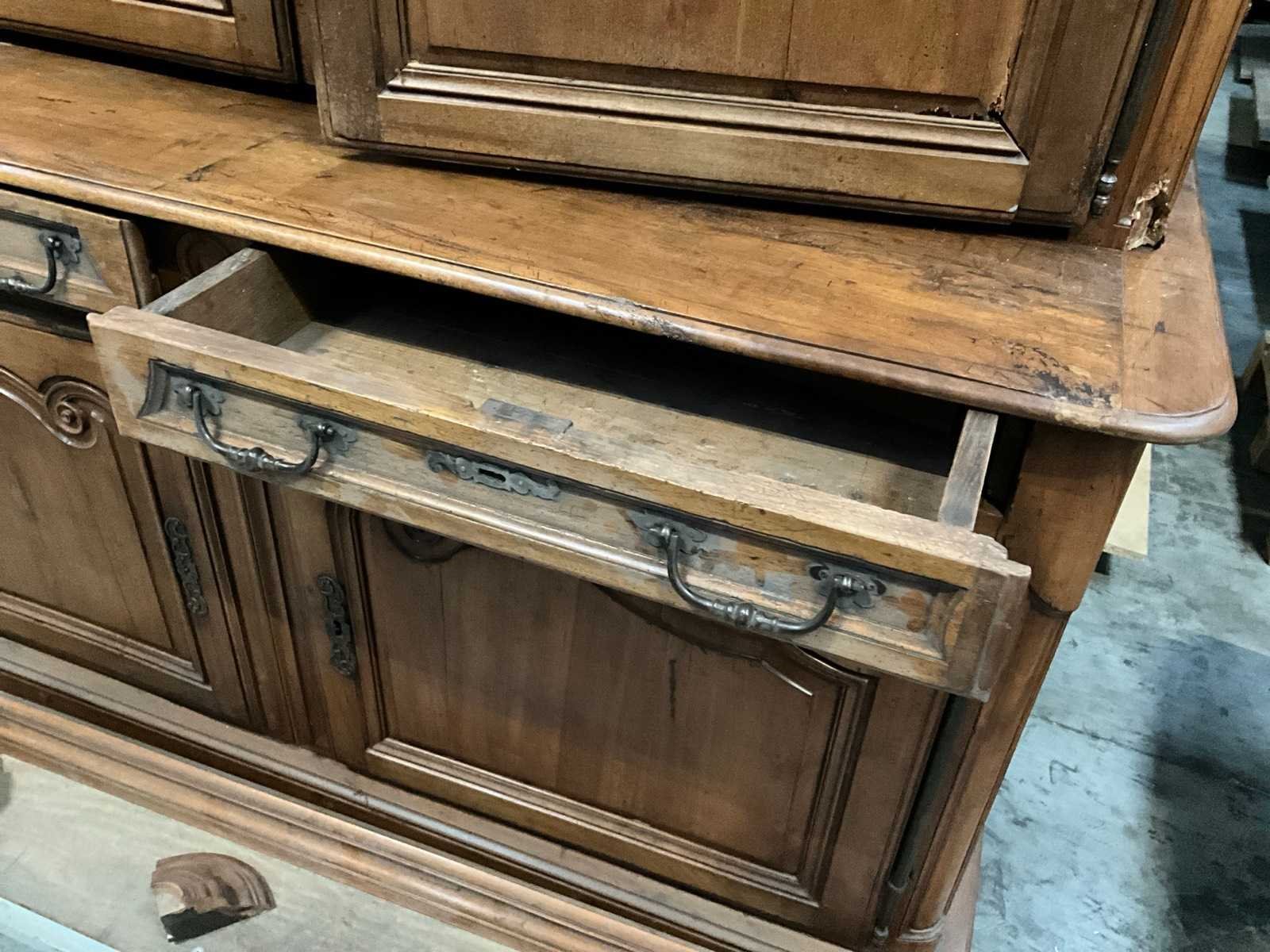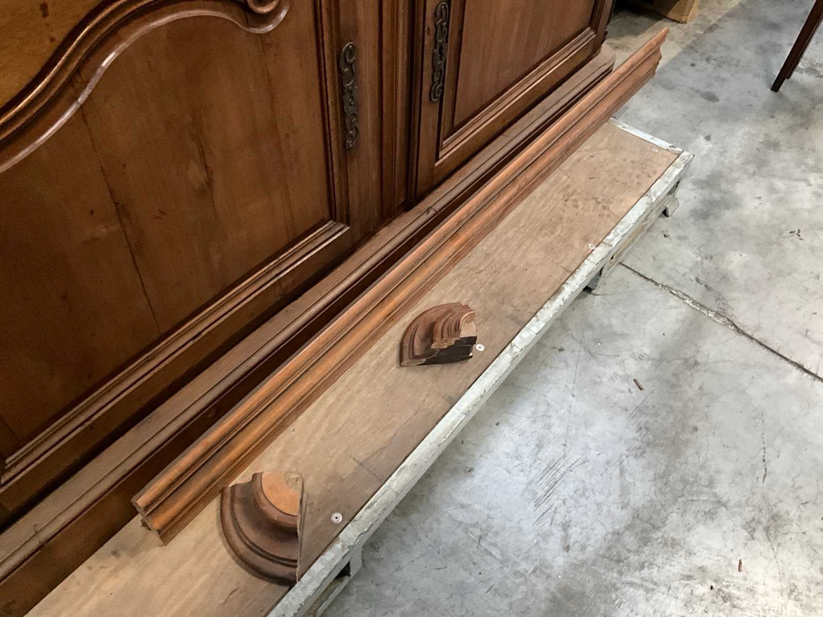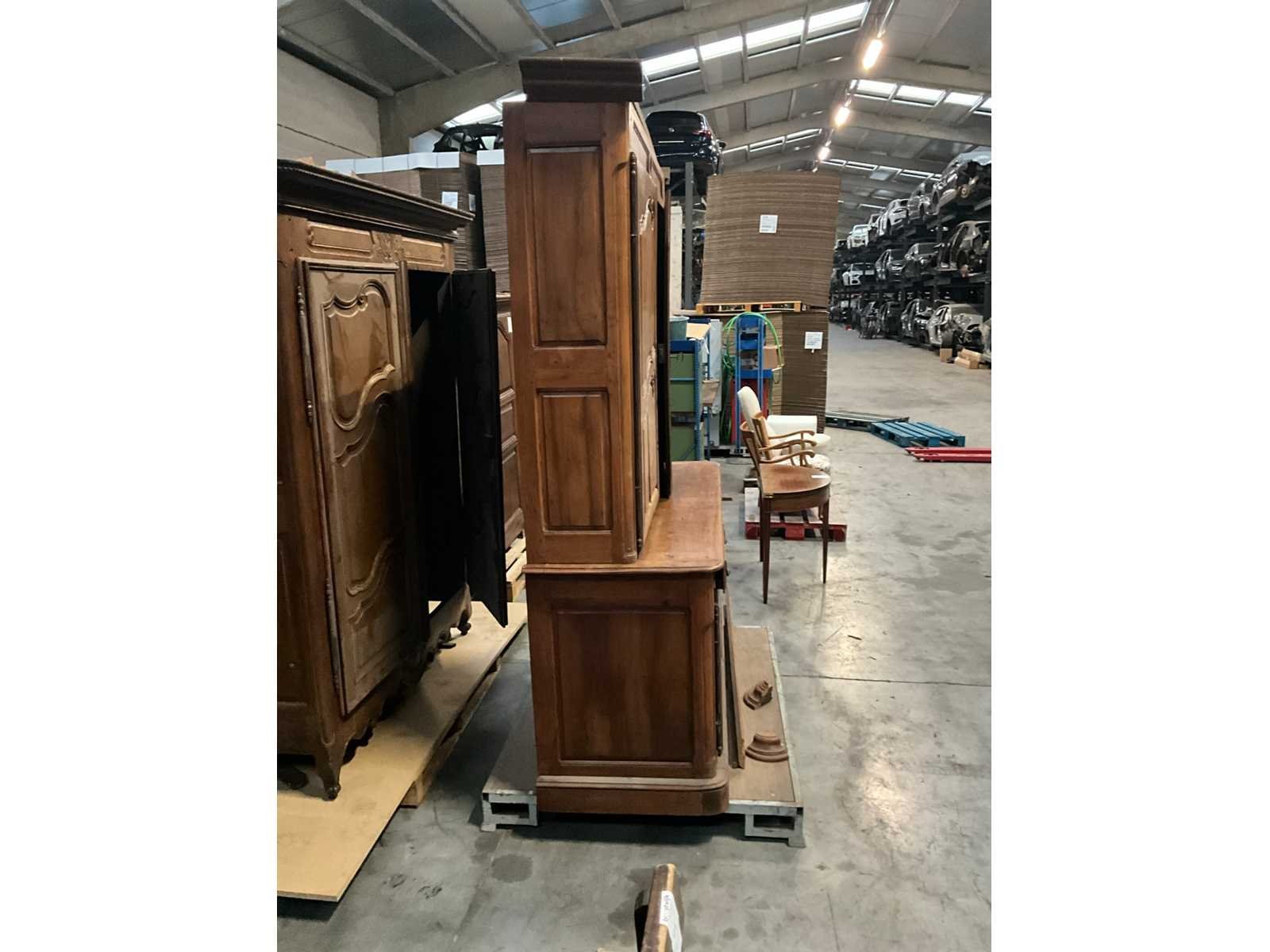 Bestaande uit bovenbeen hoogte 100 cm voorzien van 2 deuren en 2 legborden, onderste deel voorzien van 2 deuren en 2 lades, sleutel aanwezig Lengte: 68cm Breedte: 175cm Hoogte: 240cm