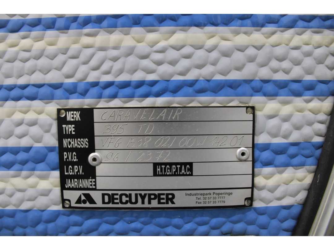 ZONDER BOORDDOCUMENTEN Merk: Caravelair Model: 395TD Product type: 395TD Chassisnummer: VFGB3802J00W14201 Bouwjaar: 1998