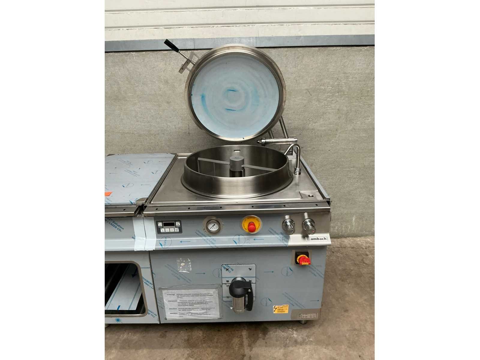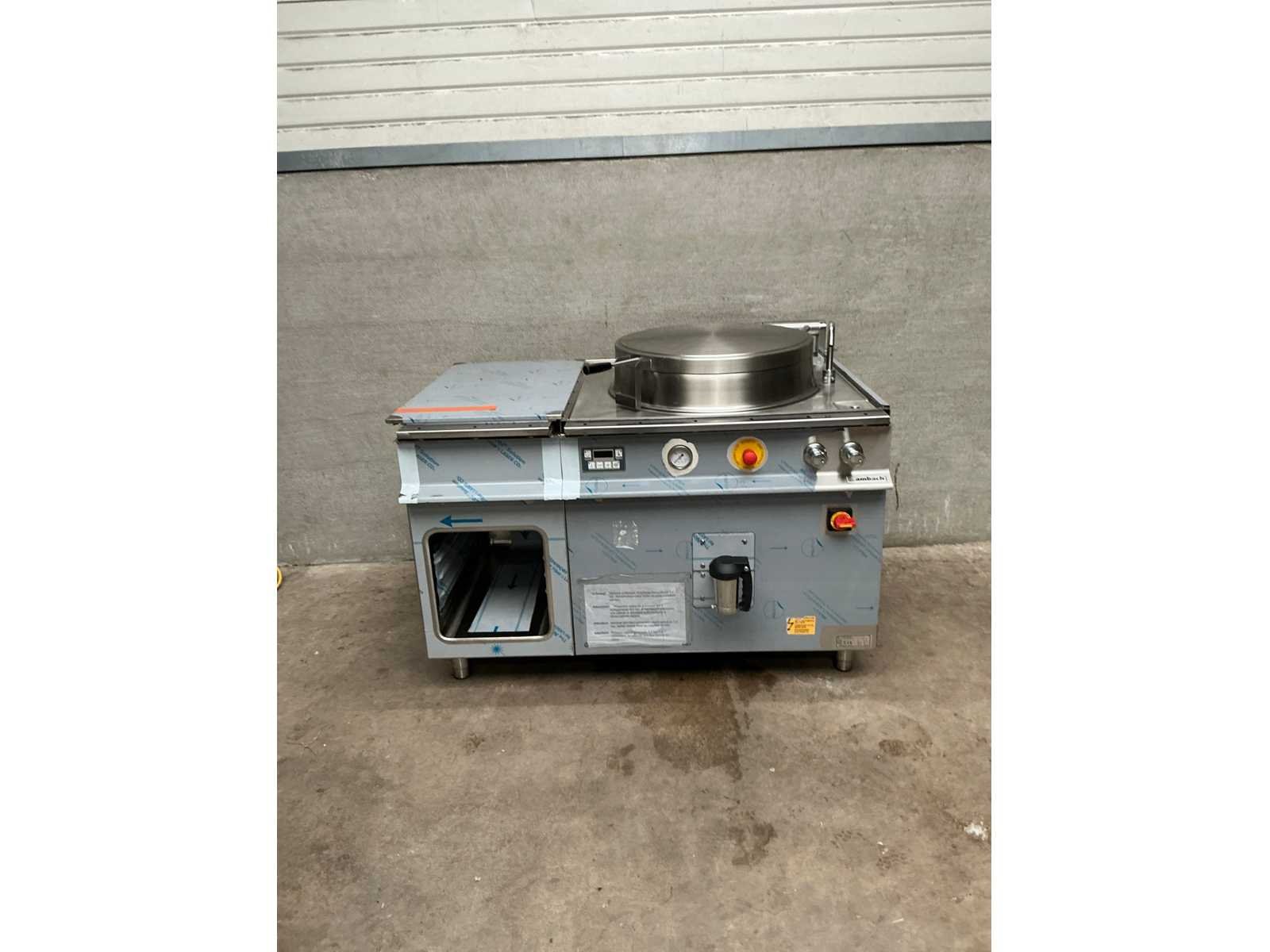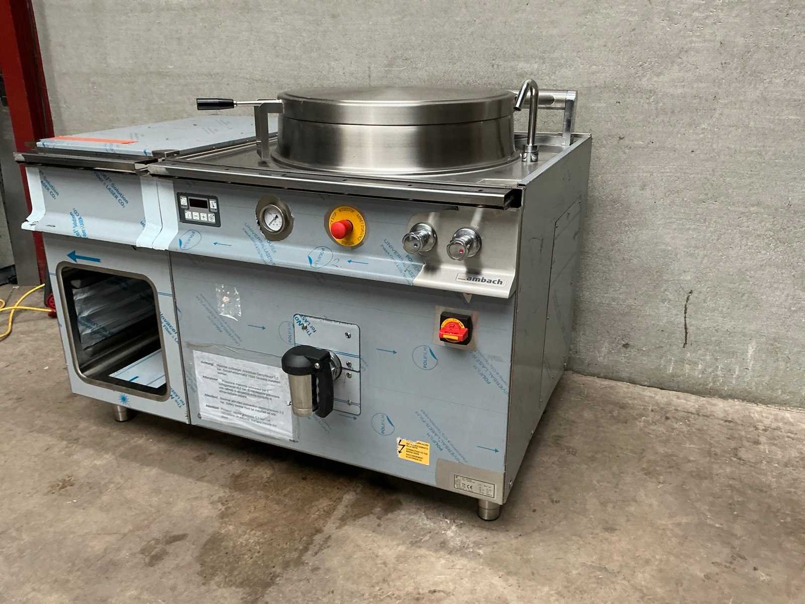 150 liter rvs kookketel voorzien van roerwerk Merk: Ambach Model: 150 E Totale afmeting Breedte: 1350mm Totale afmeting L: 910mm Totale afmeting Hoogte: 1060mm Spanning: 400
