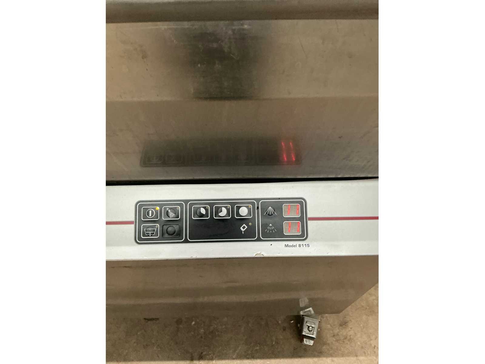 Verrijdbare rvs gereedschapvaatwasser, voorzien van 1 korfafmeting 50x50 cm; Merk: Jeros Type: 8115 Rvs: true Voorlader: true Digitaal: true Aansluiting: 400V Korf afmeting l: 82cm Korf afmeting b: 66cm Totale afmeting L: 870mm Totale afmeting Breedte: 750mm Totale afmeting Hoogte: 1700mm