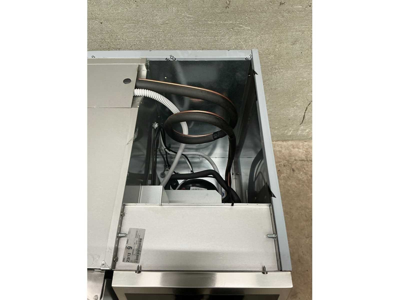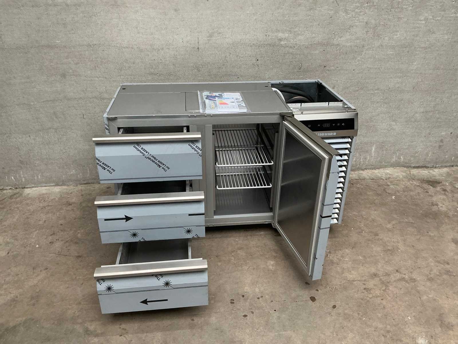 Ongebruikte rvs koelwerkbank, voorzien van 1 klapdeur, 3 laden en 3 in hoogte verstelbare roosters Merk: Liebherr Type: FRTSvg 7552 Totale afmeting L: 130cm Totale afmeting Breedte: 68cm Totale afmeting Hoogte: 81cm Digitale uitlezing: true Ingebouwde koelcompressor: true Rvs: true Aansluiting: 230V Aantal laden: 3pcs