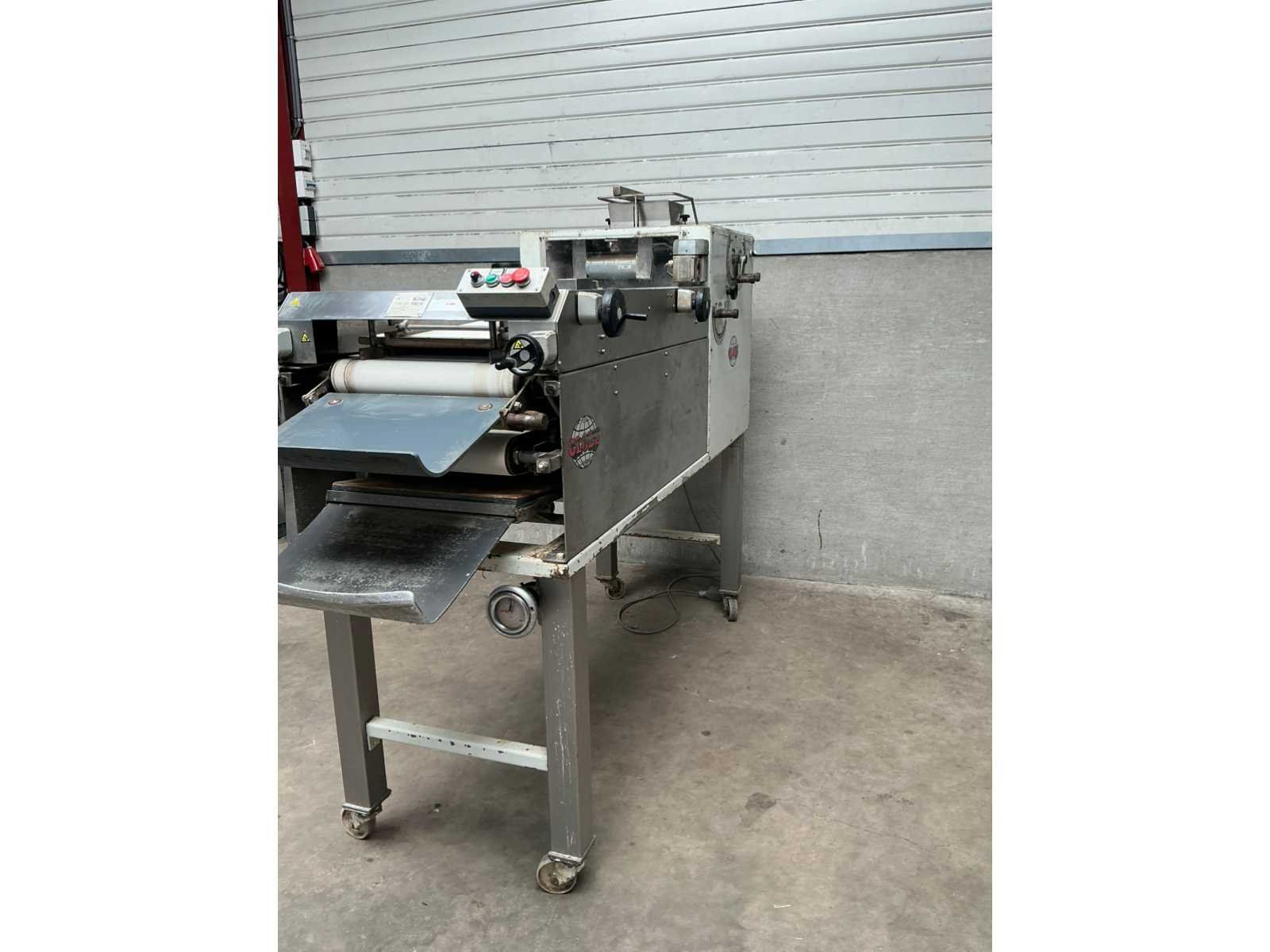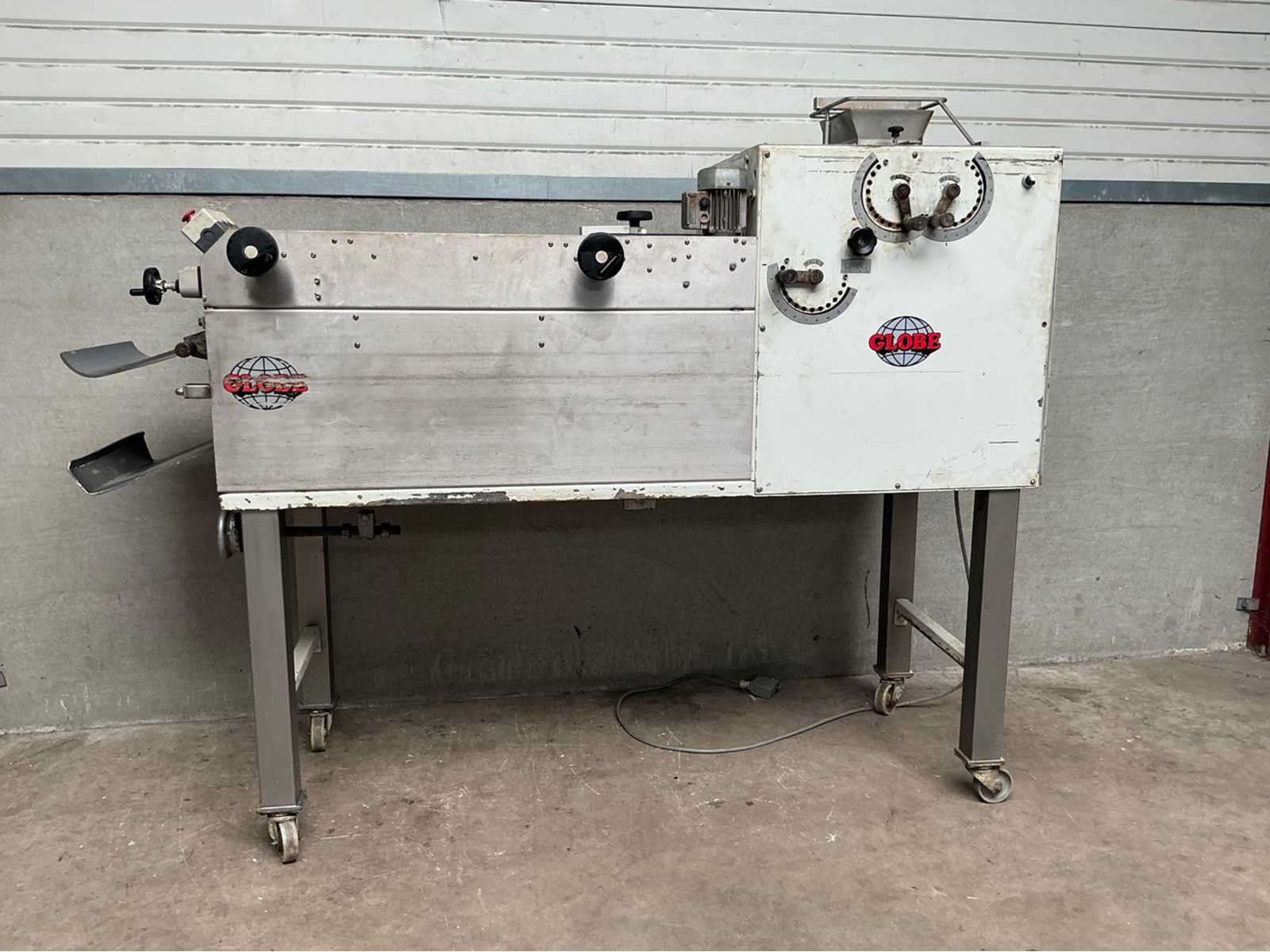 Voorzien van boven en onderband, ook heeft hij een verstelbare wals invoer en bovenbrug Merk: Globe Werkbreedte: 460mm Totale afmeting L: 820mm Totale afmeting Breedte: 2280mm Totale afmeting Hoogte: 1800mm