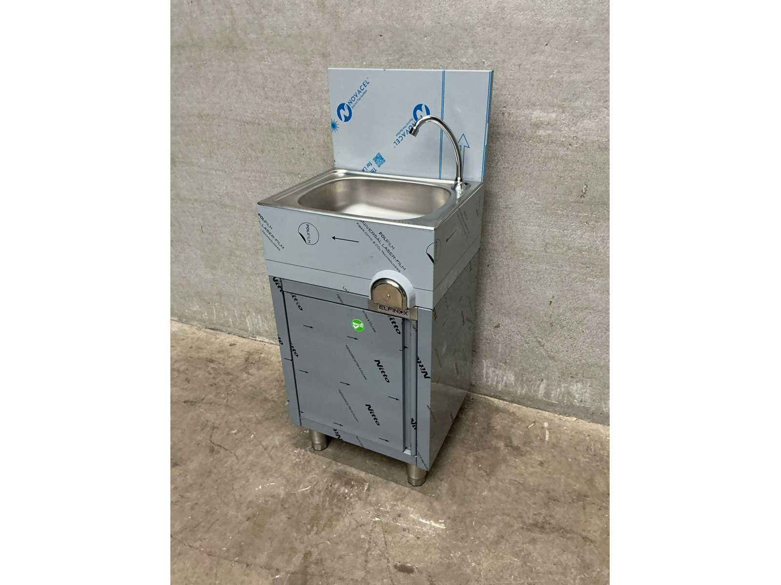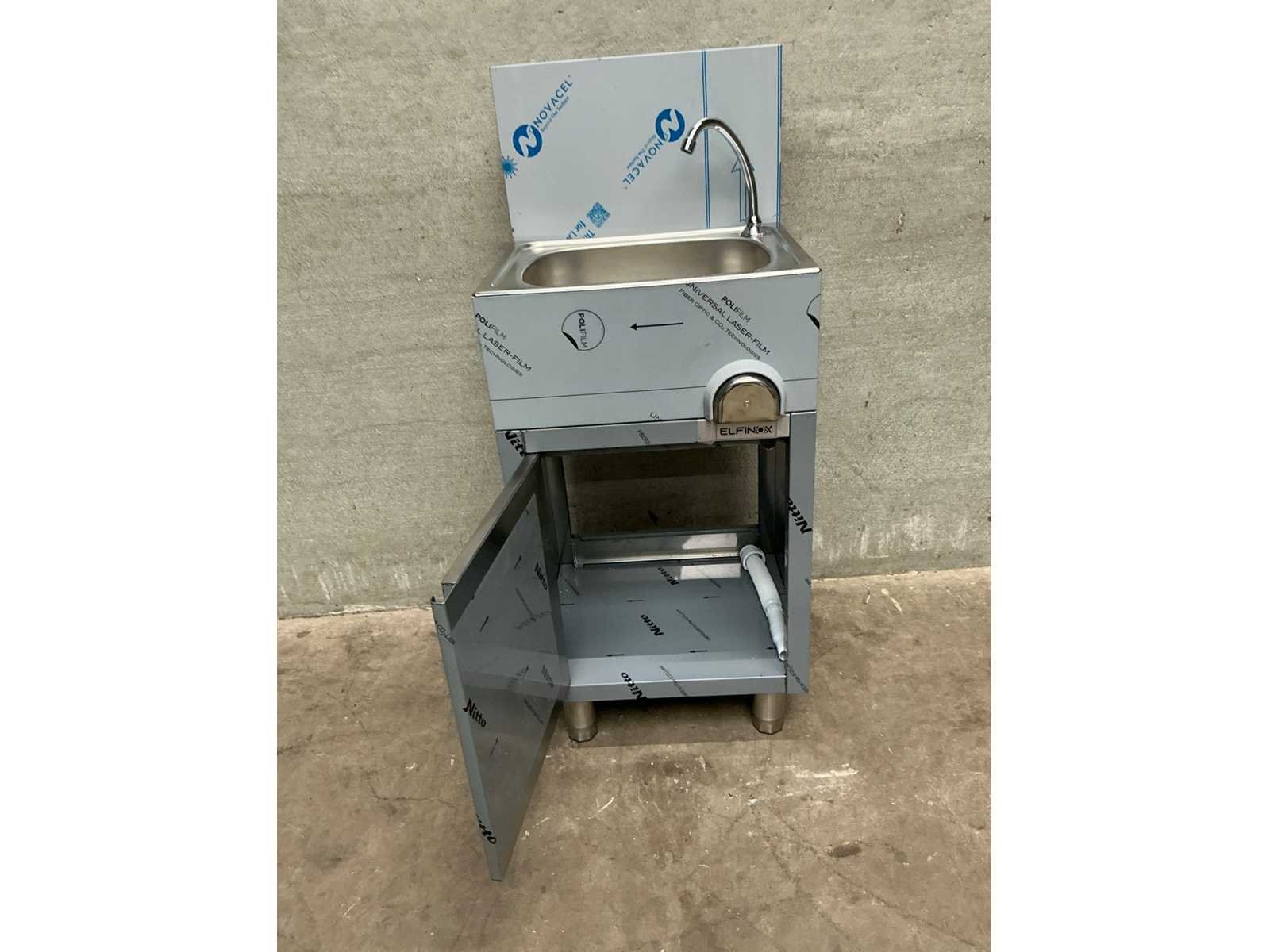 Rvs spoeltafel voorzien opstaande rand, klapdeur en een spoelbak van lxbxd 33x40x10 cm., voorzien van kniebediening Merk: Elfinox Spoelkraan: true Rvs: true Lengte: 50cm Breedte: 42cm Hoogte: 90cm