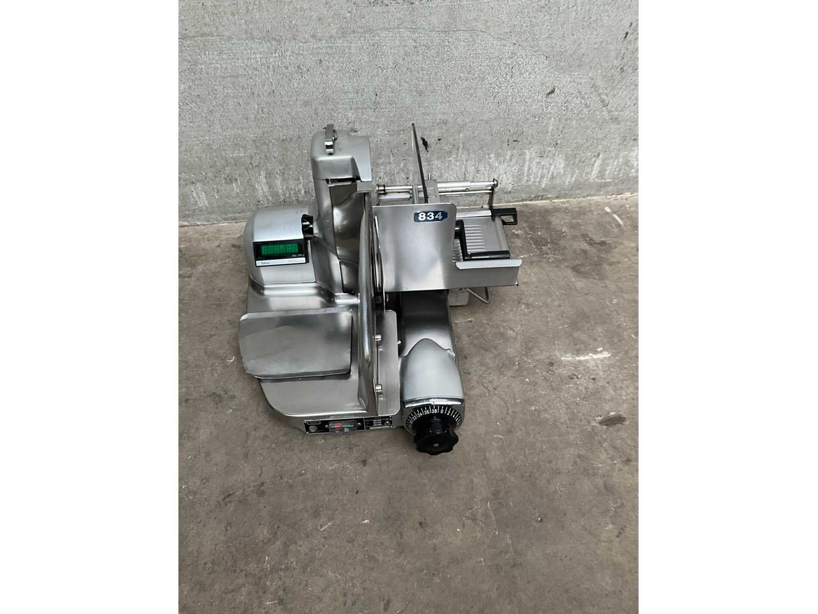 Professionele snijmachine, met weegschaal Merk: Deko Type: 834 S Messlijper: true Aansluiting: 230V Totale afmeting L: 690mm Totale afmeting Breedte: 660mm Totale afmeting Hoogte: 440mm