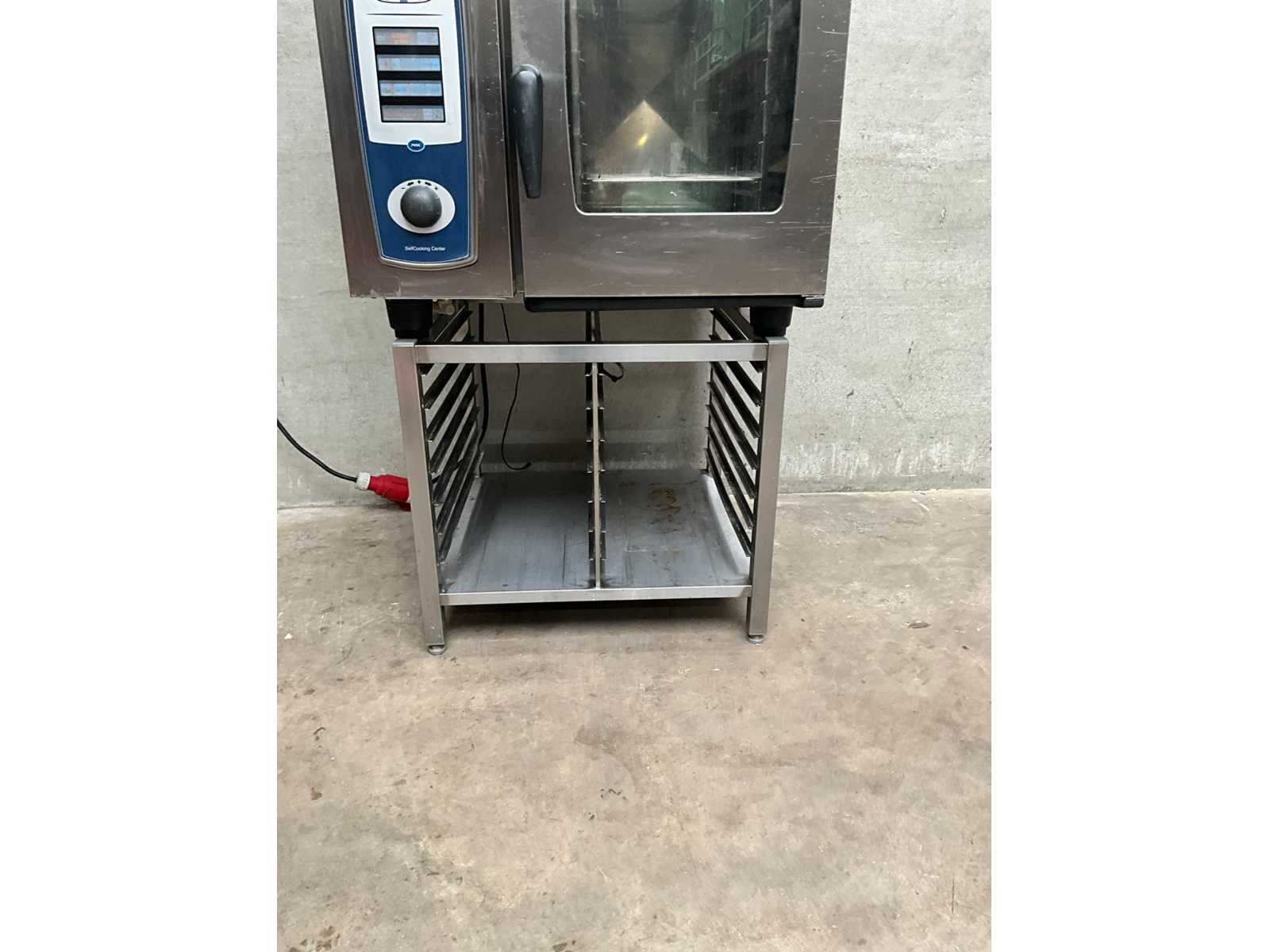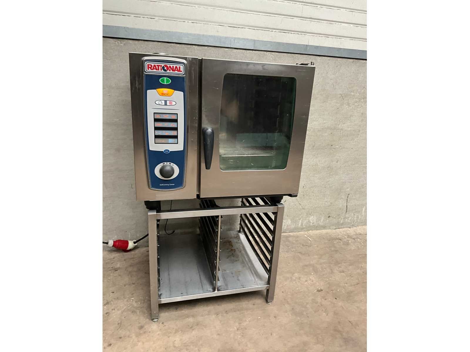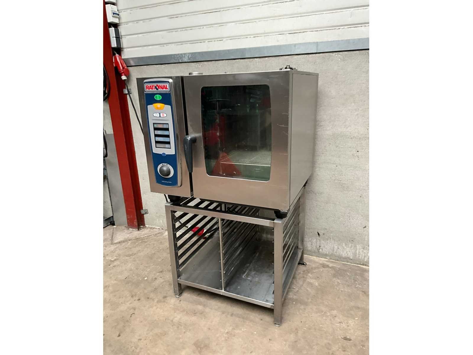 Rvs combisteamer met 6 niveaus op rvs onderstel met 12 regalen Merk: Rational Type: SCC 61E Aantal niveau's: 6 Aansluiting: 400V Digitale besturing: true Elektrisch: true Rvs: true Totale afmeting L: 85cm Totale afmeting Breedte: 84cm Totale afmeting Hoogte: 144cm