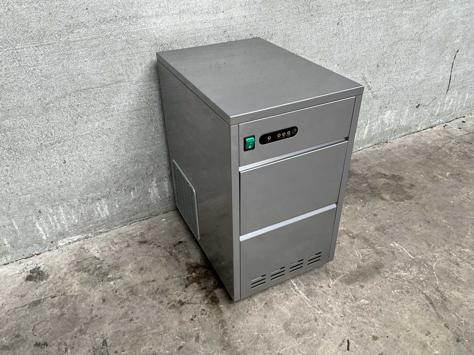 Nieuwe machine, geheel rvs, produceert 45 kg. ijs per 24 uur Capaciteit.: 24kg/24 hr Rvs: true Aansluiting: 230V Digitale uitlezing: true Ingebouwde koelcompressor: true Totale afmeting L: 33cm Totale afmeting Breedte: 48cm Totale afmeting Hoogte: 60cm