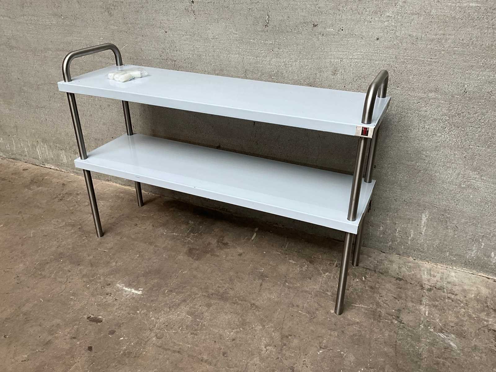 2 laags rvs etagere Merk: Inomak Lengte: 110cm Breedte: 34cm Hoogte: 77cm