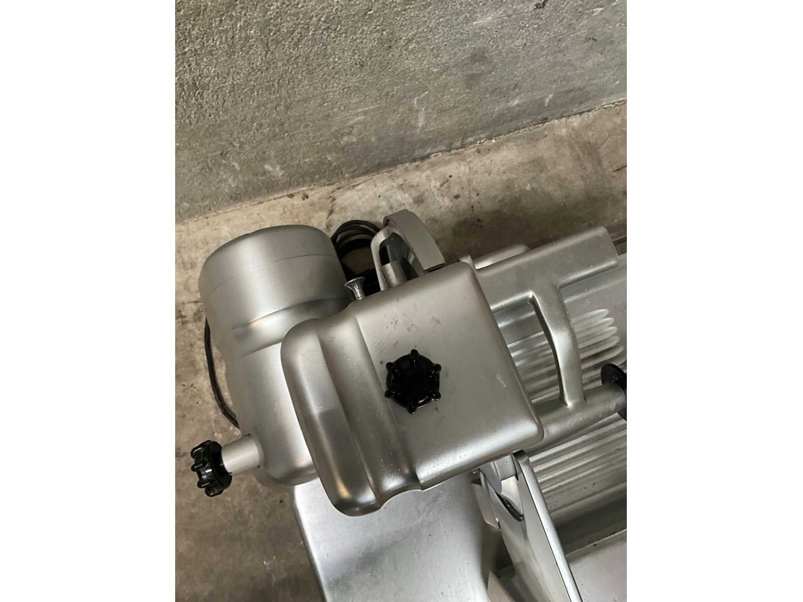 Snijmachine, met messlijper Merk: Kolossal Messlijper: true Aansluiting: 230V Totale afmeting L: 580mm Totale afmeting Breedte: 650mm Totale afmeting Hoogte: 500mm