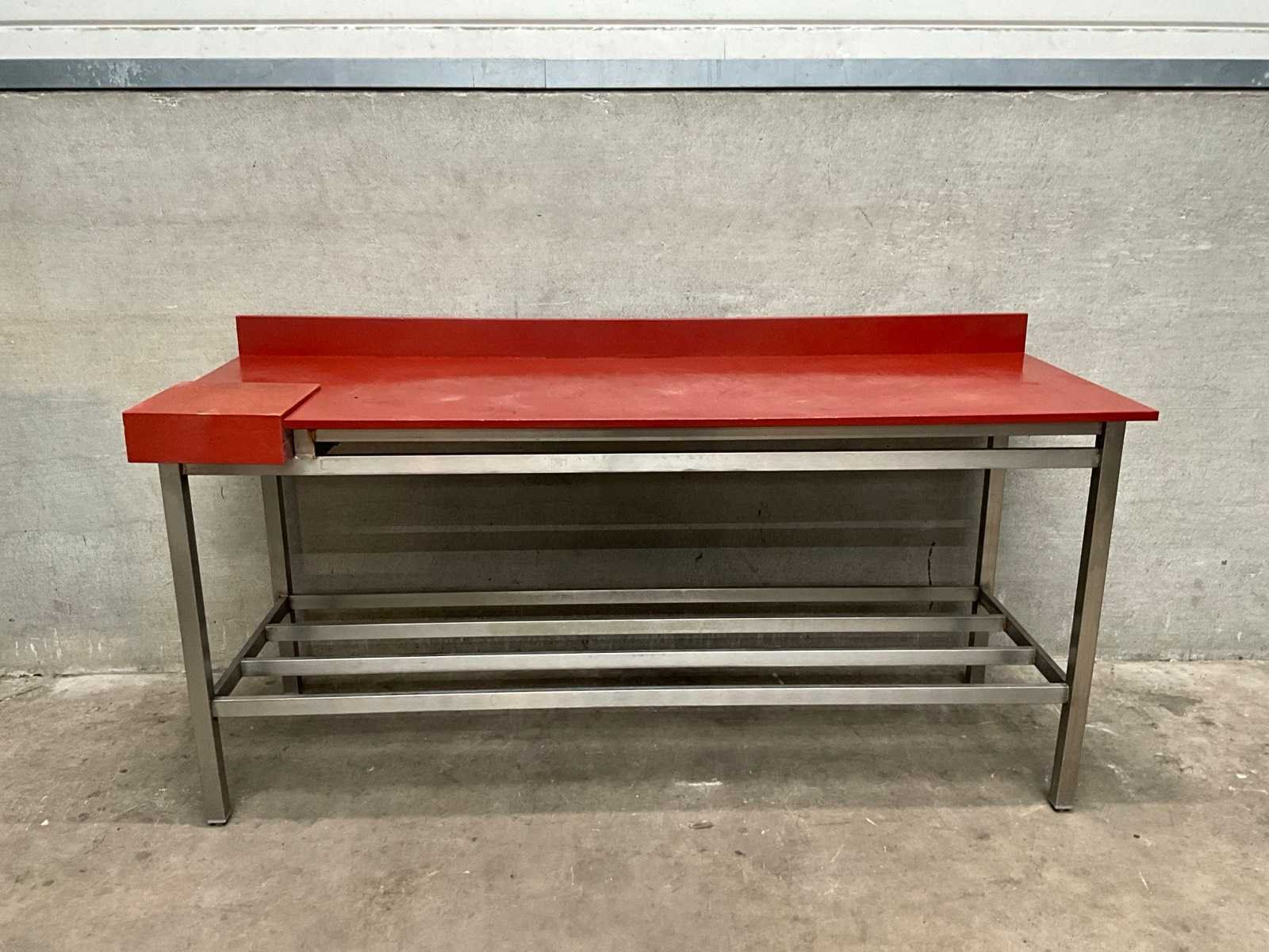 Rvs snijtafel voorzien van opstaande rand, geïntegreerd hakblok Totale afmeting L: 2000mm Totale afmeting Breedte: 700mm Totale afmeting Hoogte: 940mm