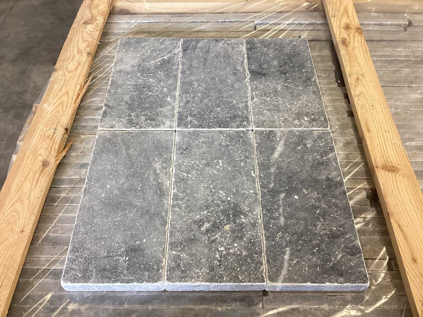 Merk: Natuursteen Kleur: Blauw Afwerking: Gezoet en Getrommeld Lengte: 300mm Breedte: 400-500-600mm Dikte: 30mm Materiaal: Hardsteen Type: Vloertegel Totaal oppervlakte: 36.8m² Totaal gewicht: 2300kg