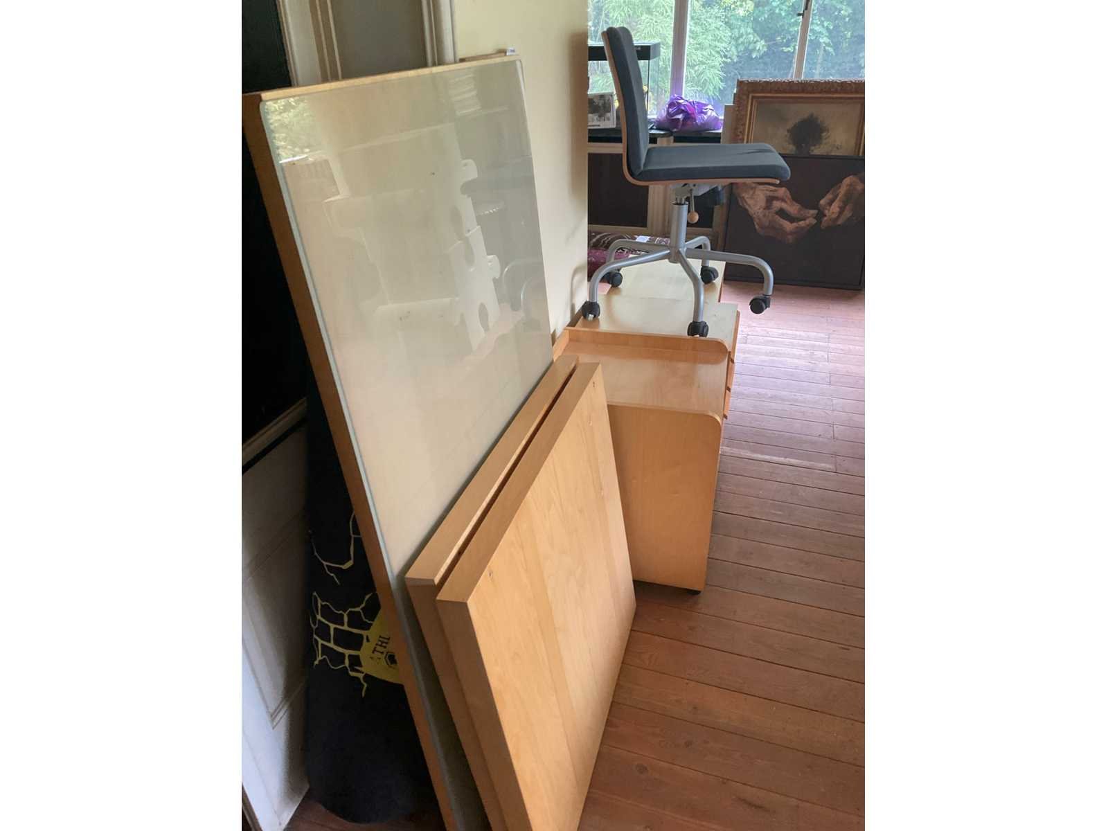 Inclusief bureaustoel en 3 mobiele kasten Lengte: 80cm Breedte: 140cm Hoogte: 77cm