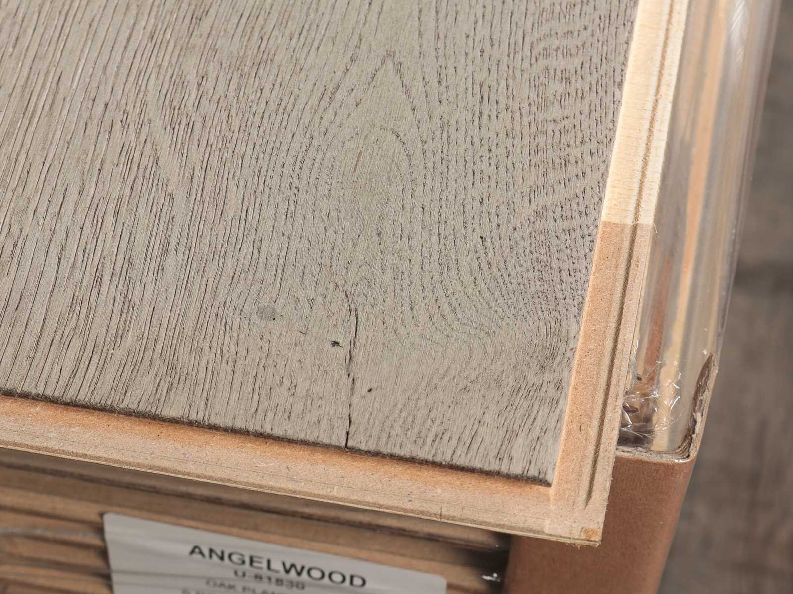 Gemakkelijk te leggen wegens clicksysteem, geschikt voor alle soorten vloer en koelverwarmingen, kwaliteits parketvloer, vloer is van hoogwaardig Europees eiken hout, kant en klaar behandeld, dikte 13,5 mm, toplaag 3 mm, 17 pakken a 2,075 m2 Merk: Angelwood Product type: Parket Oppervlakte: 35m² Geschikt voor vloerverwarming: Ja V-groef: Ja Afwerking: Geolied, geborsteld, met v-groef Aantal m² per verpakking: 2.075m² Kleur: Light grey oak 835-1 Gewicht: 310kg Lengte: 1820mm Breedte: 190mm Materiaal: Eiken multiplank