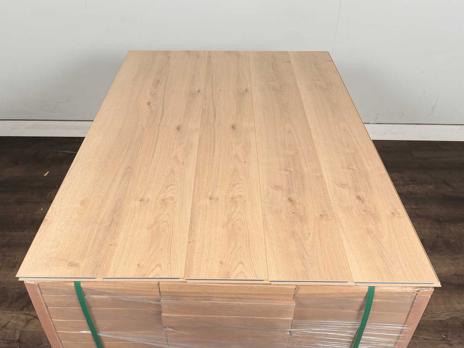 Kwaliteits laminaat vloer, dikte 8 mm, watervast, voorzien van clicksysteem, goed te combineren met vloerverwarming, kras en slijtvast, anti slip, gemakkelijk schoon te maken, warm en comfortabel, 20 pakken a 2,131 m2 Merk: Villery en Boch Product type: Laminaat Oppervlakte: 42m² Geschikt voor vloerverwarming: Ja V-groef: Ja Afwerking: Voelbaar structuur, anti slip, met v-groef Aantal m² per verpakking: 2.131m² Kleur: Boltimore oak Gewicht: 300kg Lengte: 1380mm Breedte: 193mm Materiaal: HDF/MDF