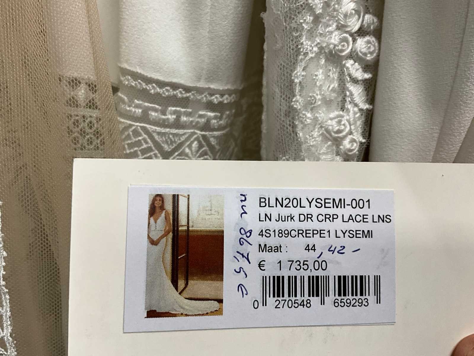 In diverse uitvoeringen en waaronder voornamelijk maten 42 en 44. Merk: ROSA CLARA Product type: Luna Novias Maat: Diverse maten