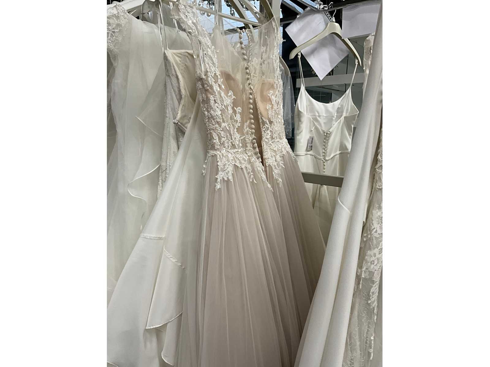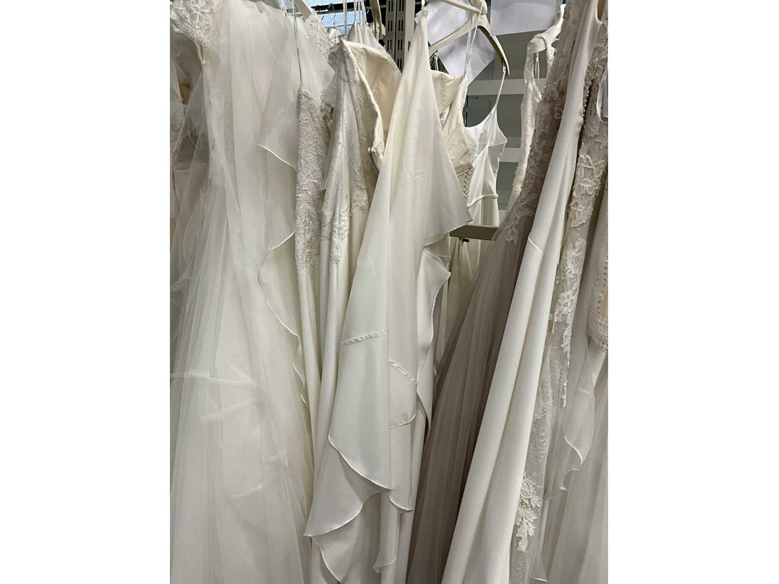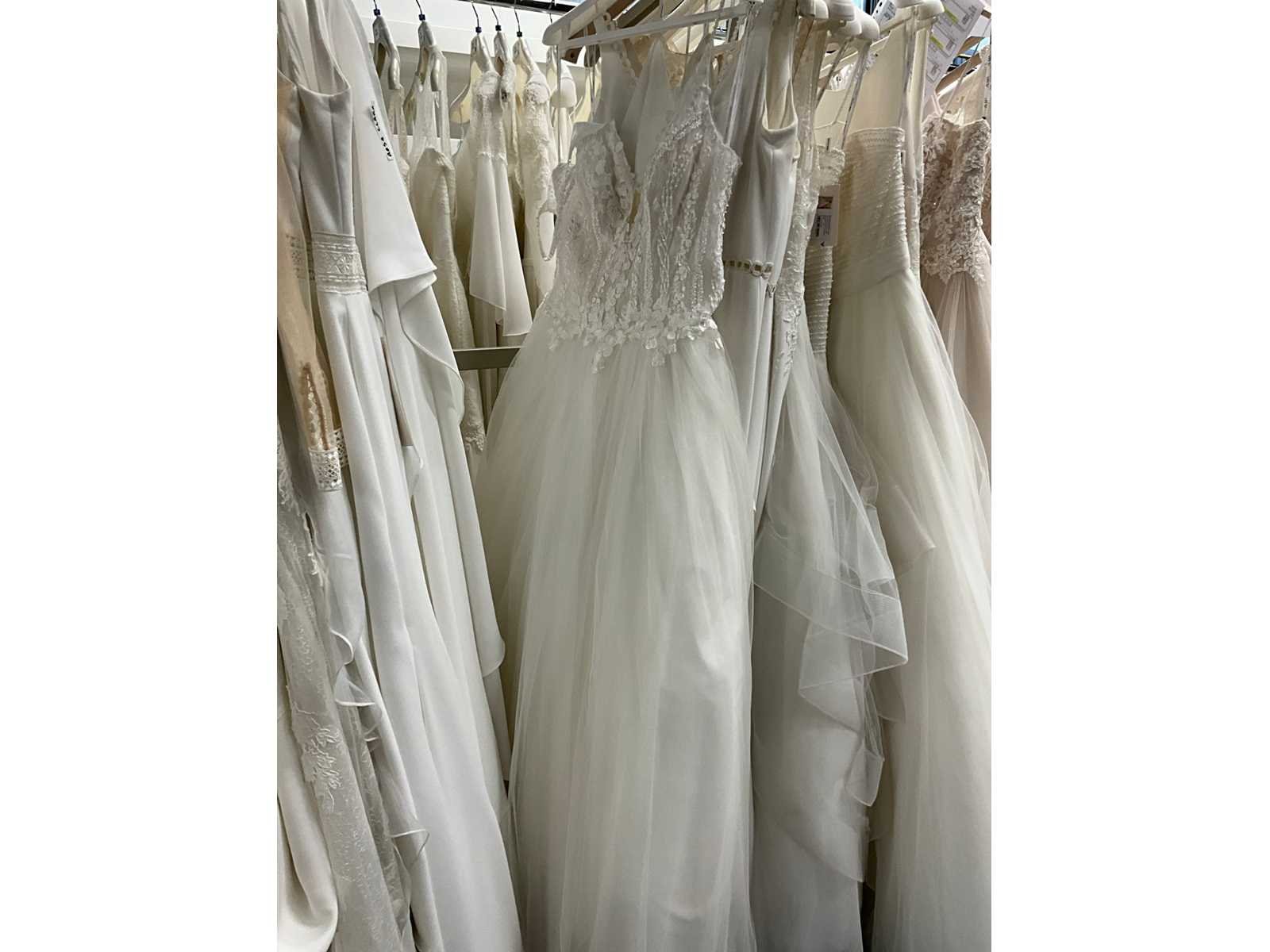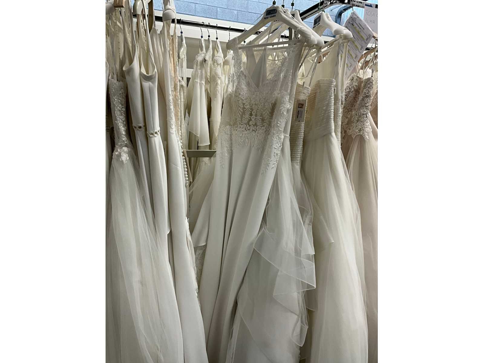 In diverse uitvoeringen en waaronder voornamelijk maten 42 en 44. Merk: ROSA CLARA Product type: Luna Novias Maat: Diverse maten