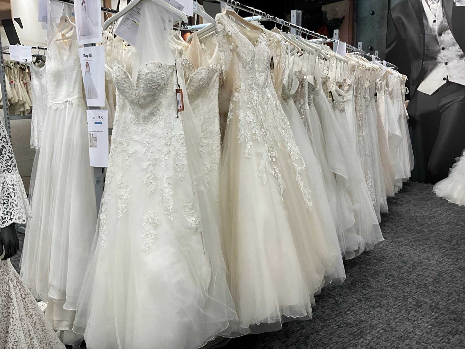 In diverse uitvoeringen en waaronder maten van 38 tot 42 (en 1x 44). Voornamelijk modellen met een A lijn en waaronder met een zeer mooie brede rok. En waarvan 1 exemplaar Cosmobela. Merk: DEMETRIOS Maat: Diverse maten