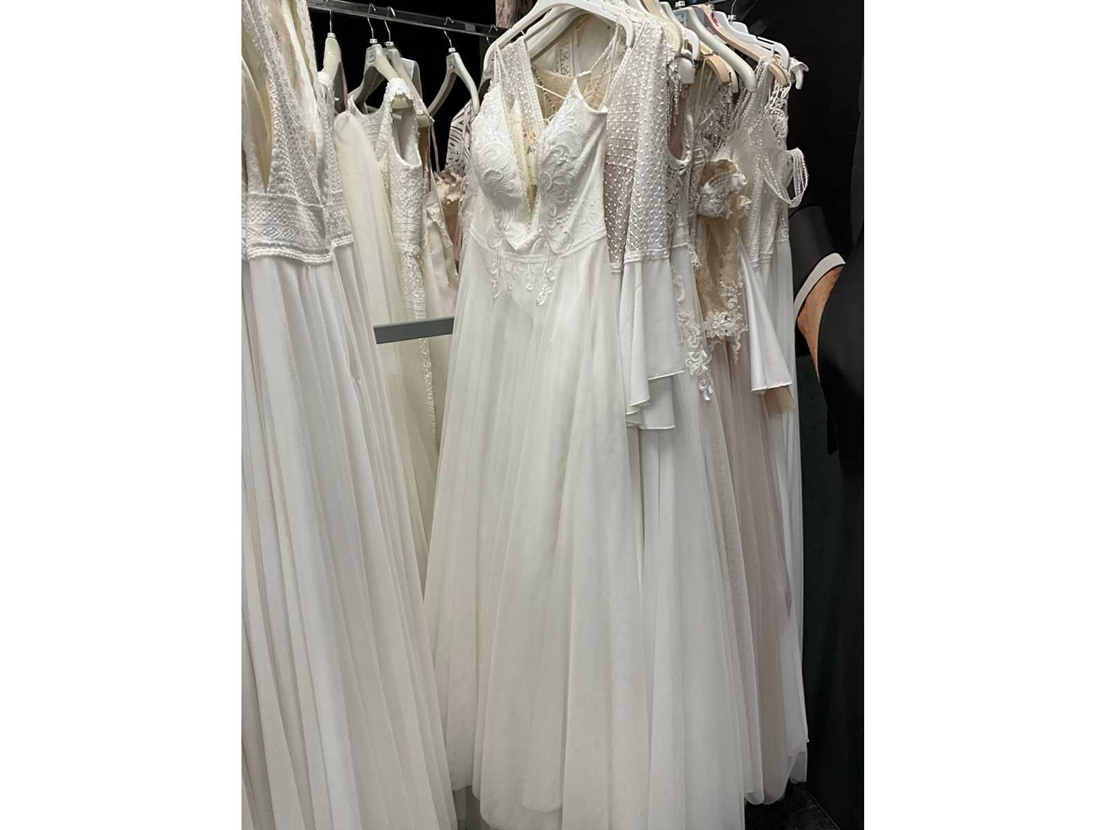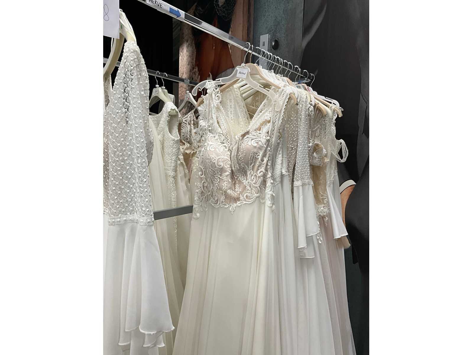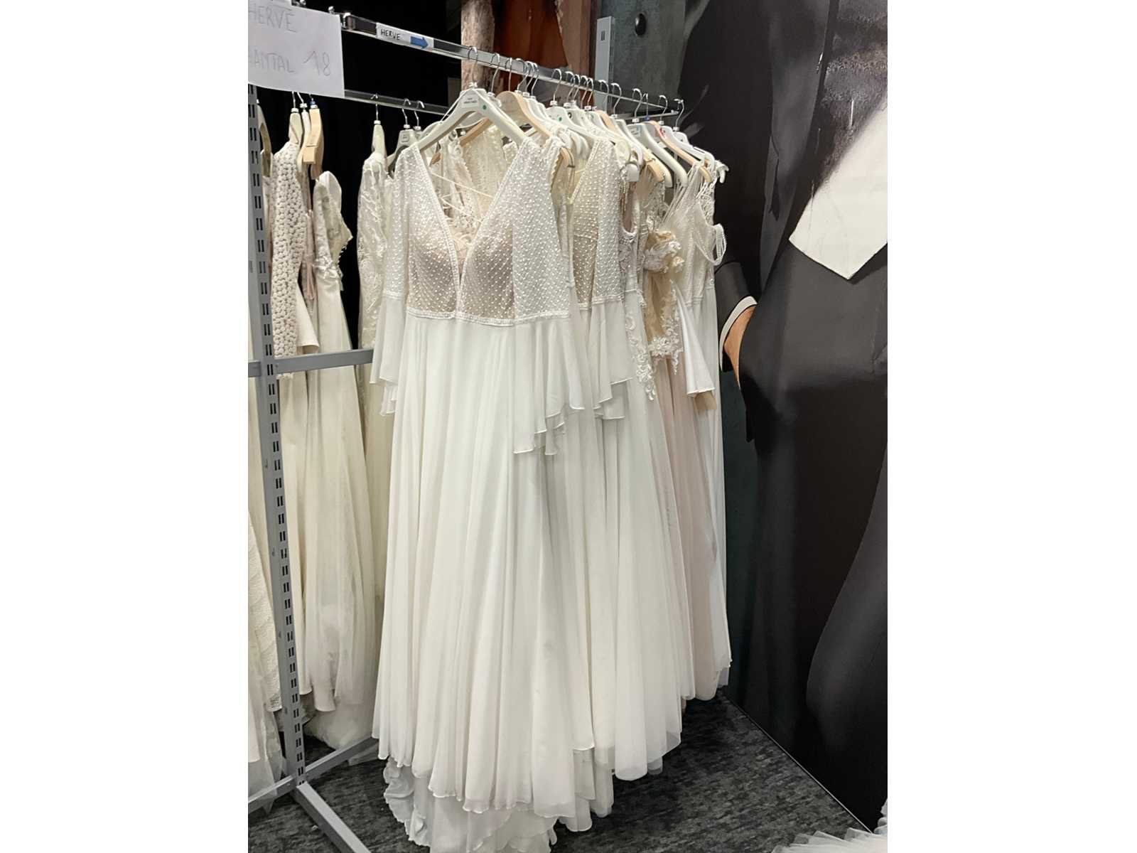 In diverse uitvoeringen en waaronder maten van 38 tot 44. Voornamelijk modellen met een A lijn en waaronder met een zeer mooie brede rok. Merk: HERVE Maat: Diverse maten