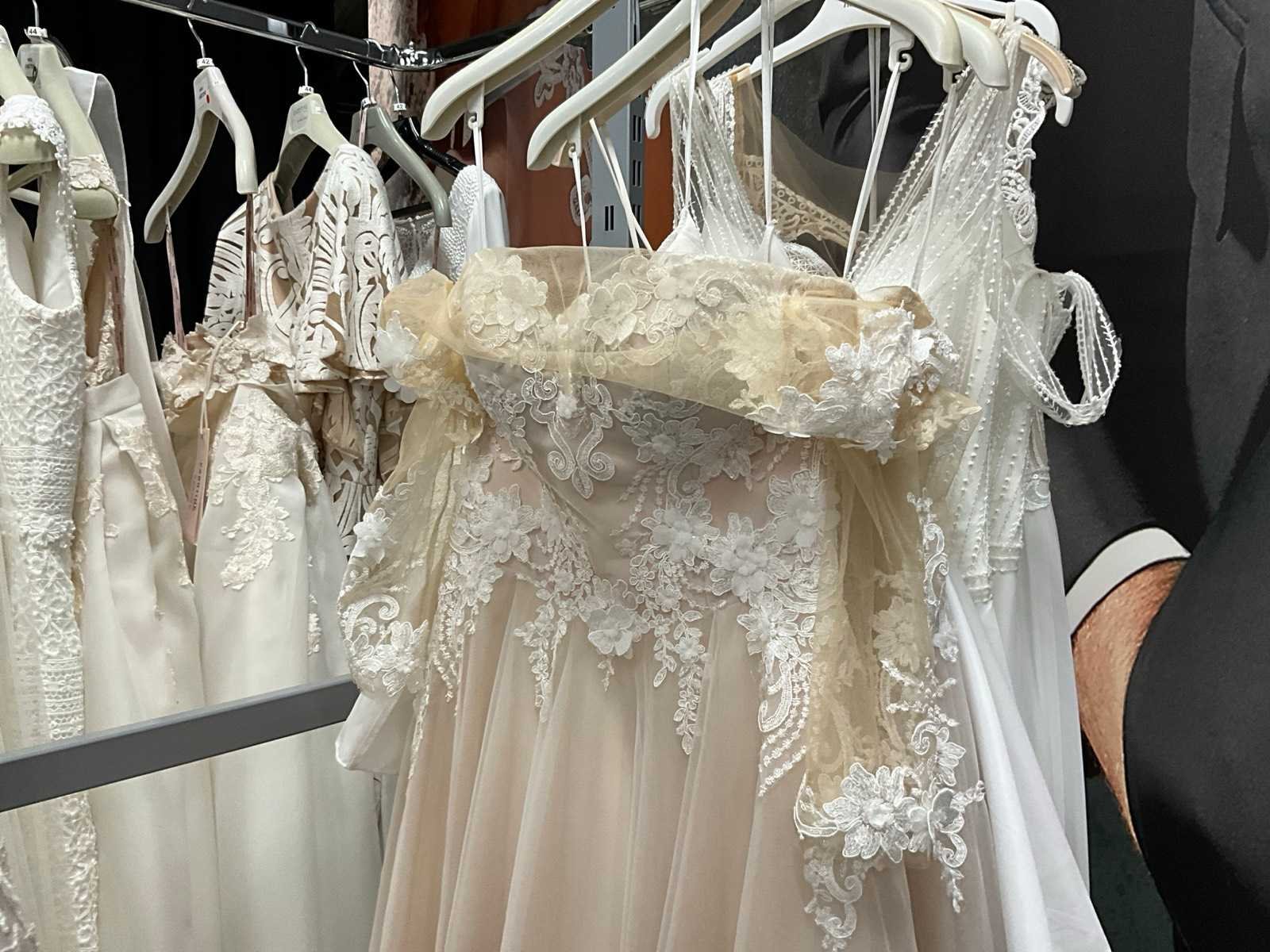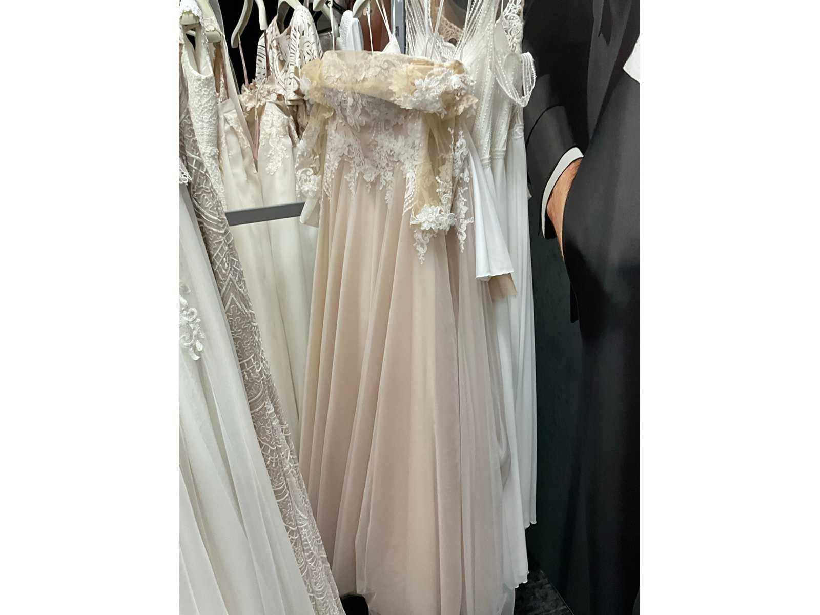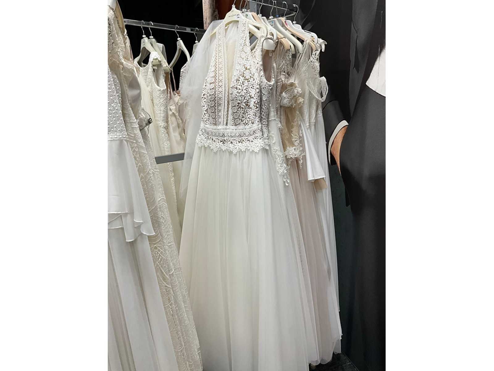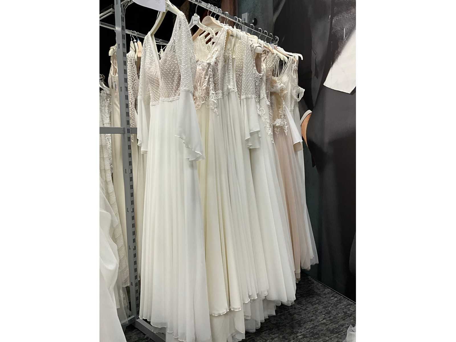 In diverse uitvoeringen en waaronder maten van 38 tot 44. Voornamelijk modellen met een A lijn en waaronder met een zeer mooie brede rok. Merk: HERVE Maat: Diverse maten
