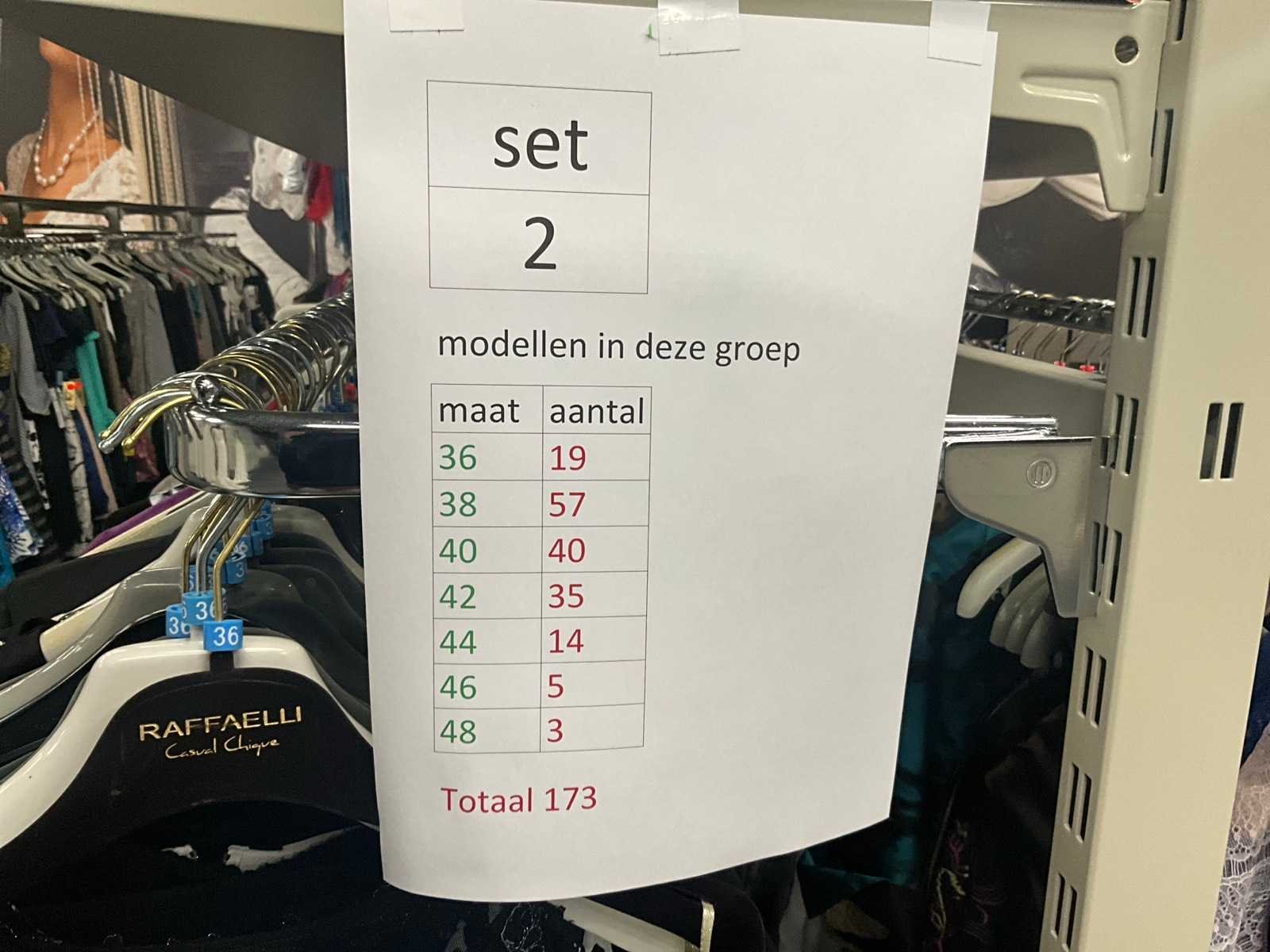 In diverse maten vanaf maat 36 tot 48, verdeling : zie blad qua aantallen per maat. Waaronder bijna hoofdzakelijk LINEA RAFFAELLI.