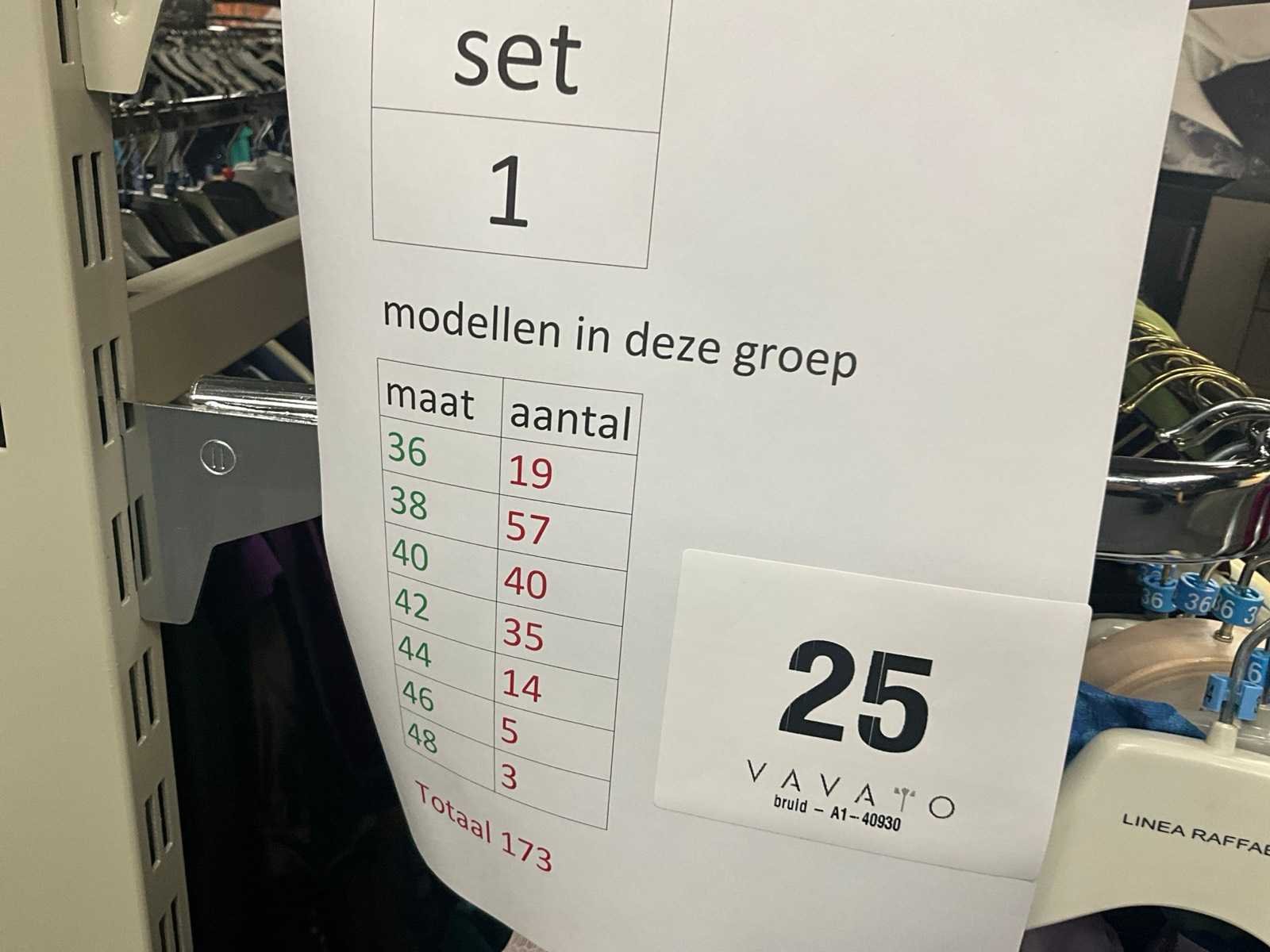 In diverse maten vanaf maat 36 tot 48, verdeling : zie blad qua aantallen per maat. Waaronder bijna hoofdzakelijk LINEA RAFFAELLI.