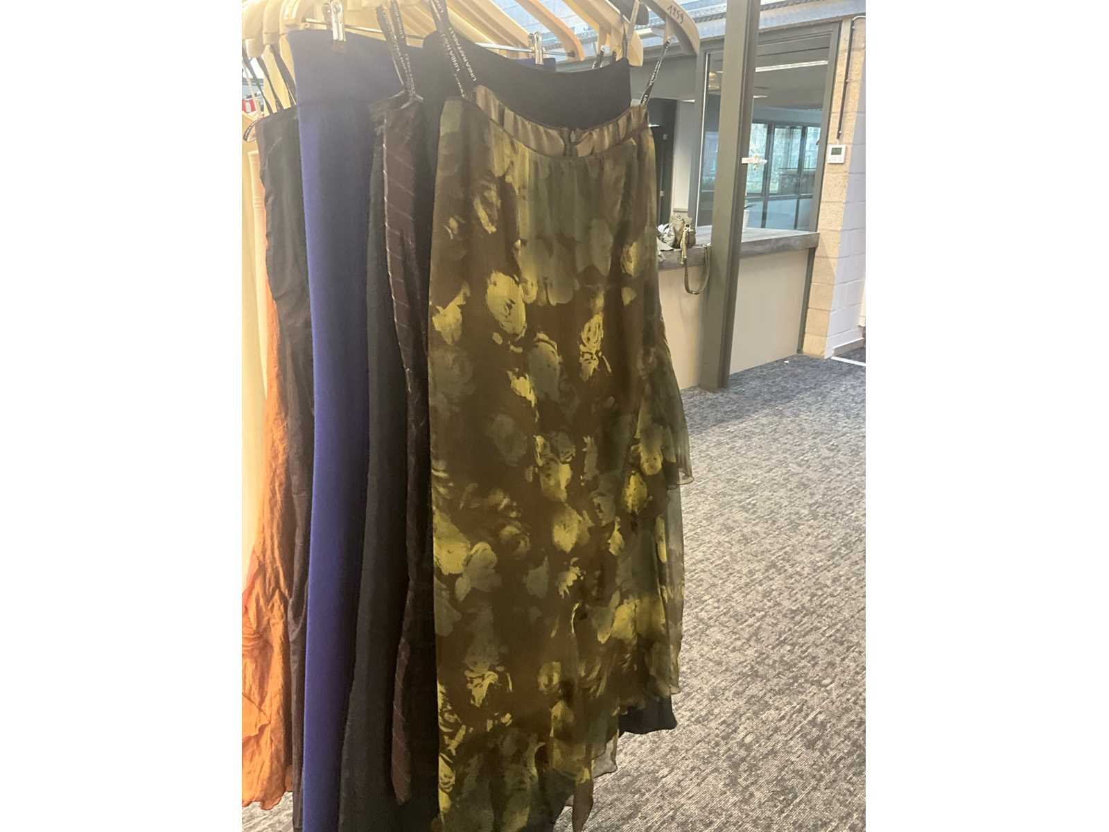 Diverse rokken in diverse maten van 38 tot 48. Op verrijdbare kledingrek, inclusief rek !