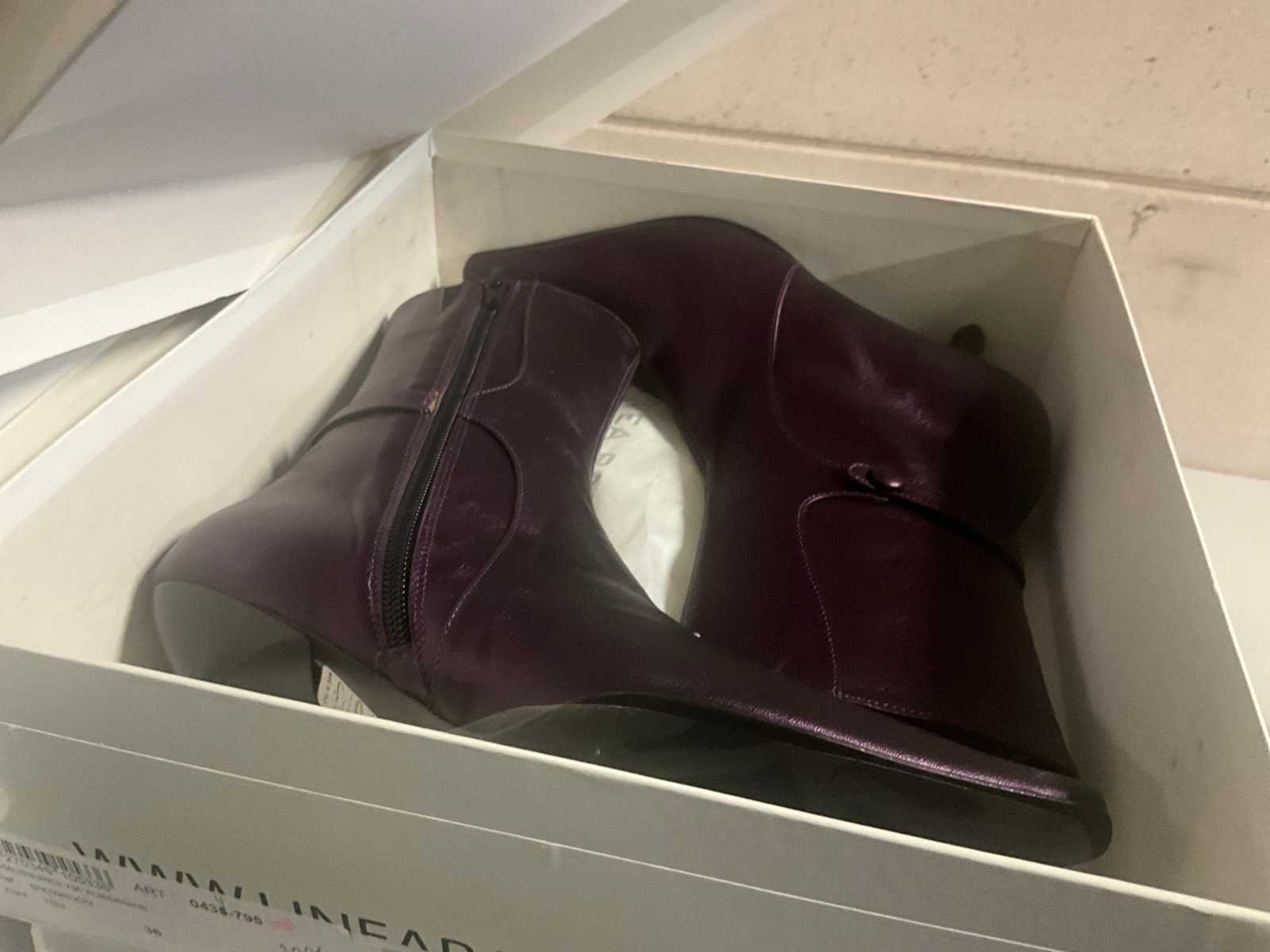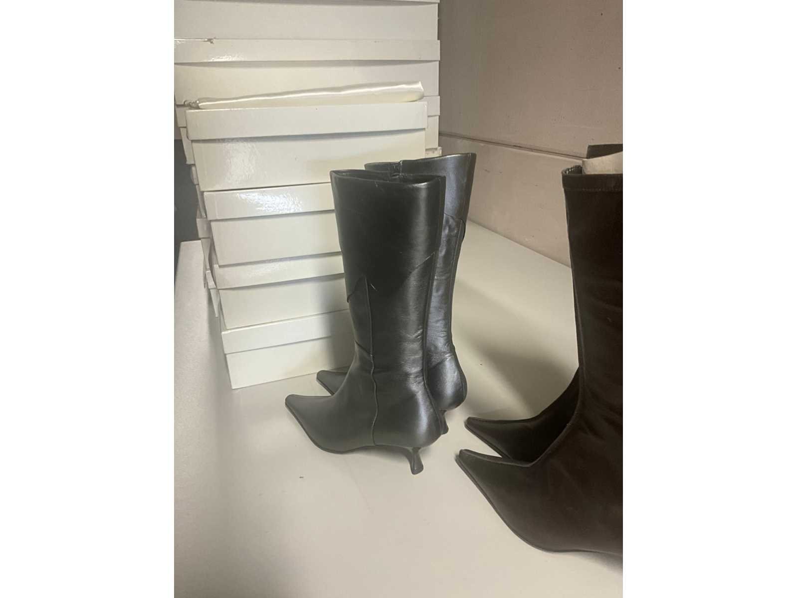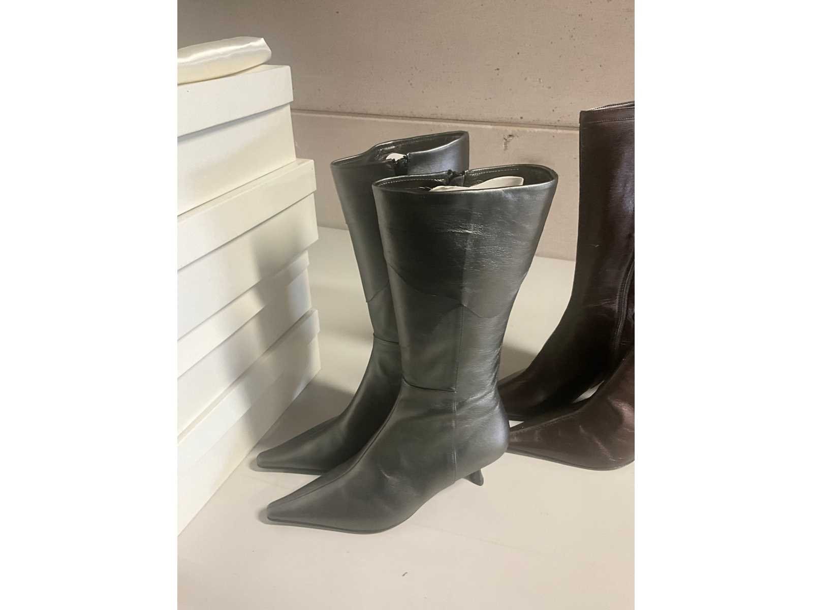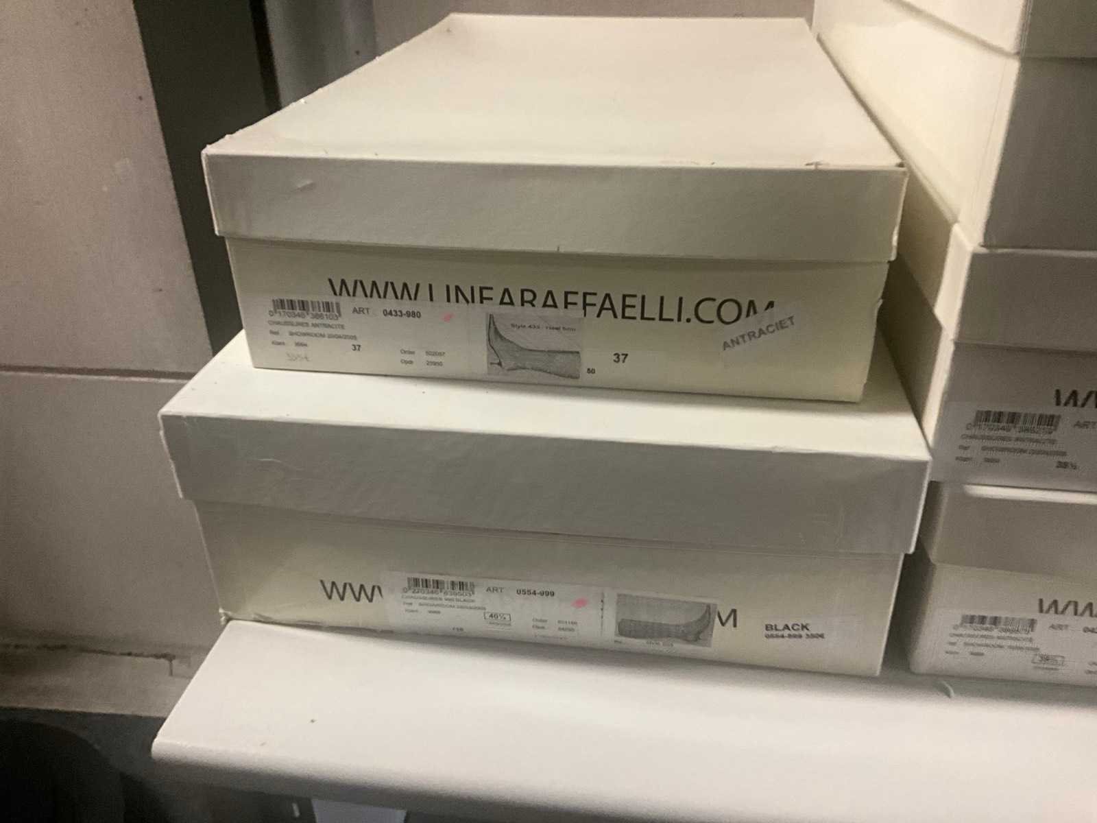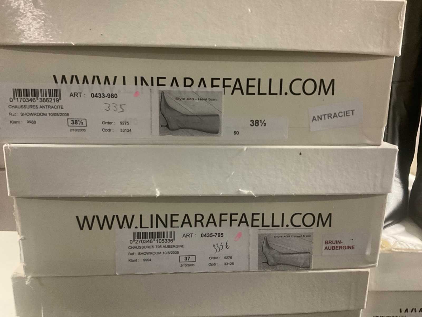 Waaronder in diverse maten vanaf 36 tot 40. Waarvan voornamelijk 2 modellen art. 795 en 980, in verschillende kleuren waaronder antraciet, aubergine, coffee, black, volgens foto’s qua paren. En paar extra korte laarzen. Merk: Linea Raffaelli