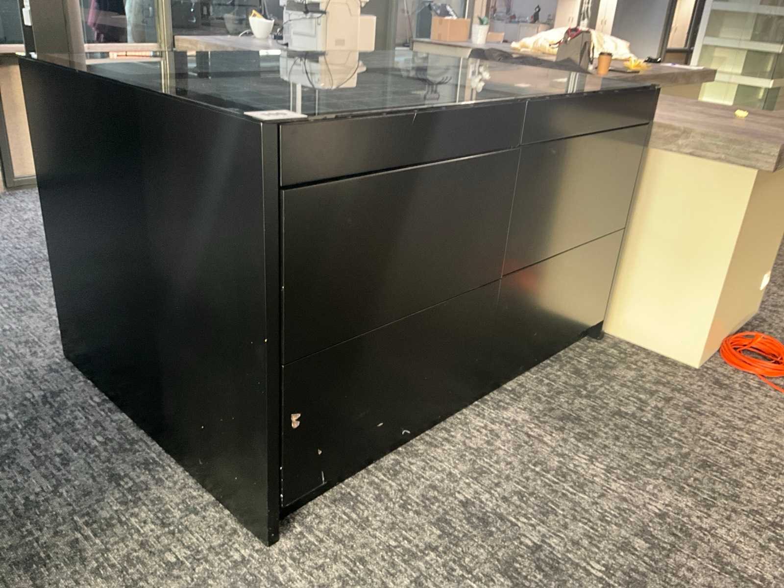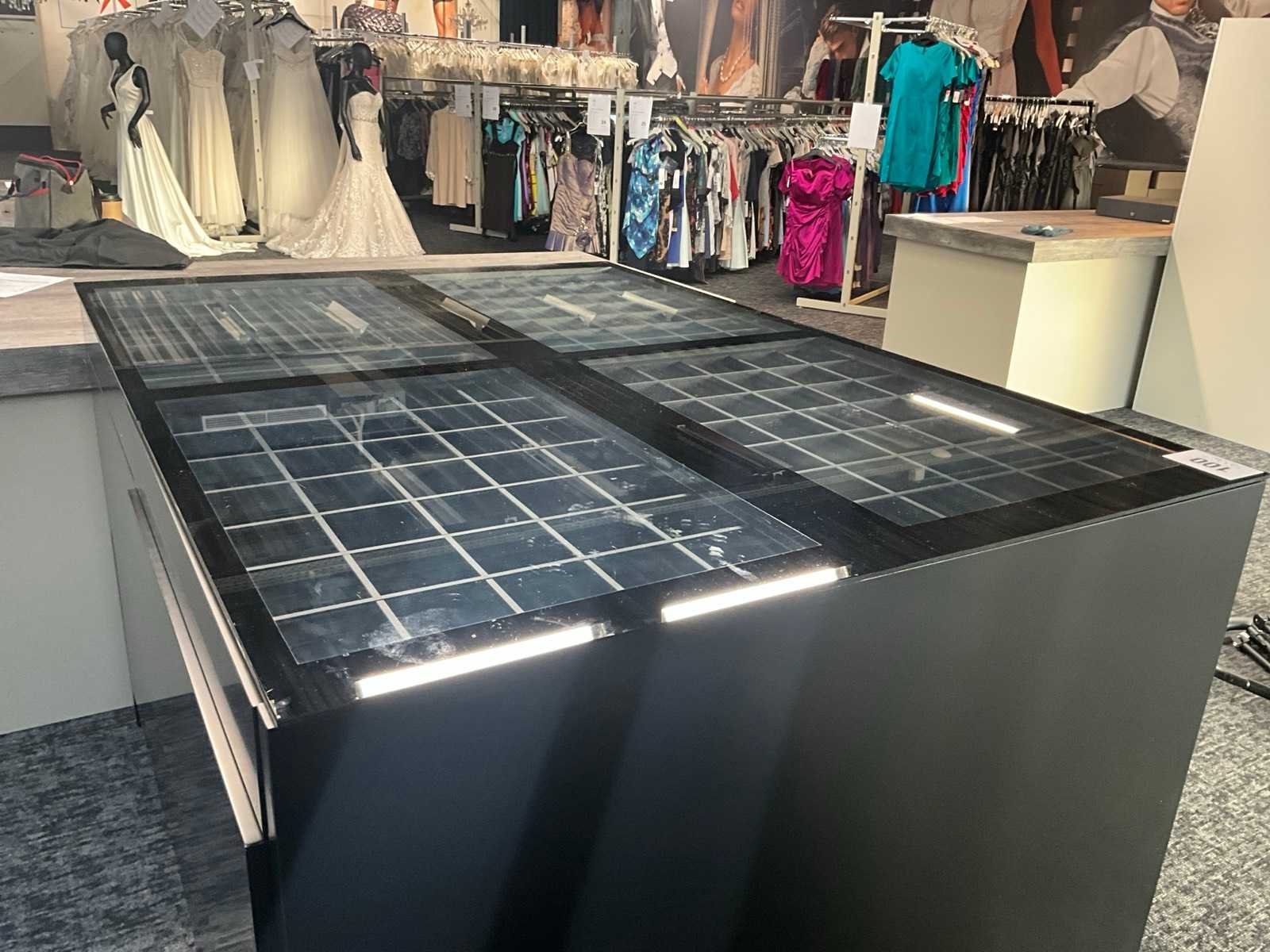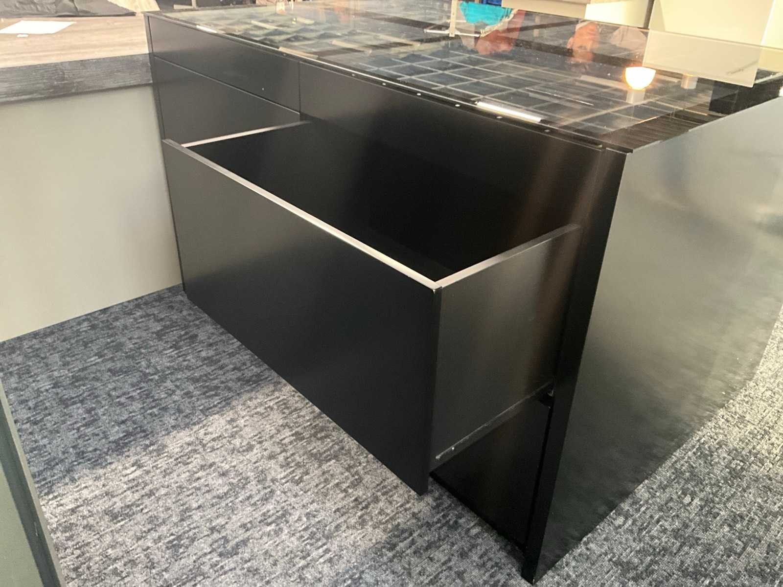 Langs beide zijden voorzien van 6 schuiven, totaal 12 laden waarvan bovenaan 4 laden elk voorzien van 35 verdeelvakken en glazen blad bovenaan. Aantal laden: 12 Totale afmeting L: 1830mm Totale afmeting Breedte: 1300mm Totale afmeting Hoogte: 1100mm
