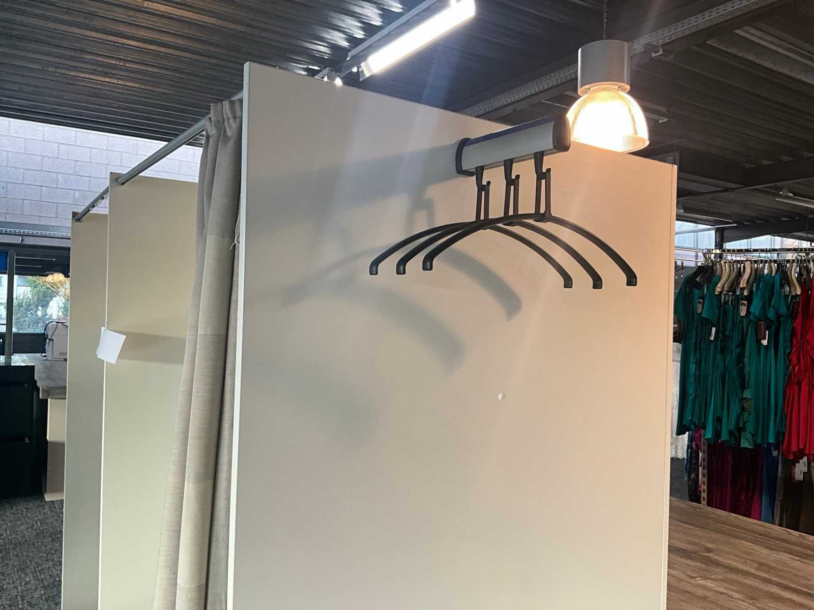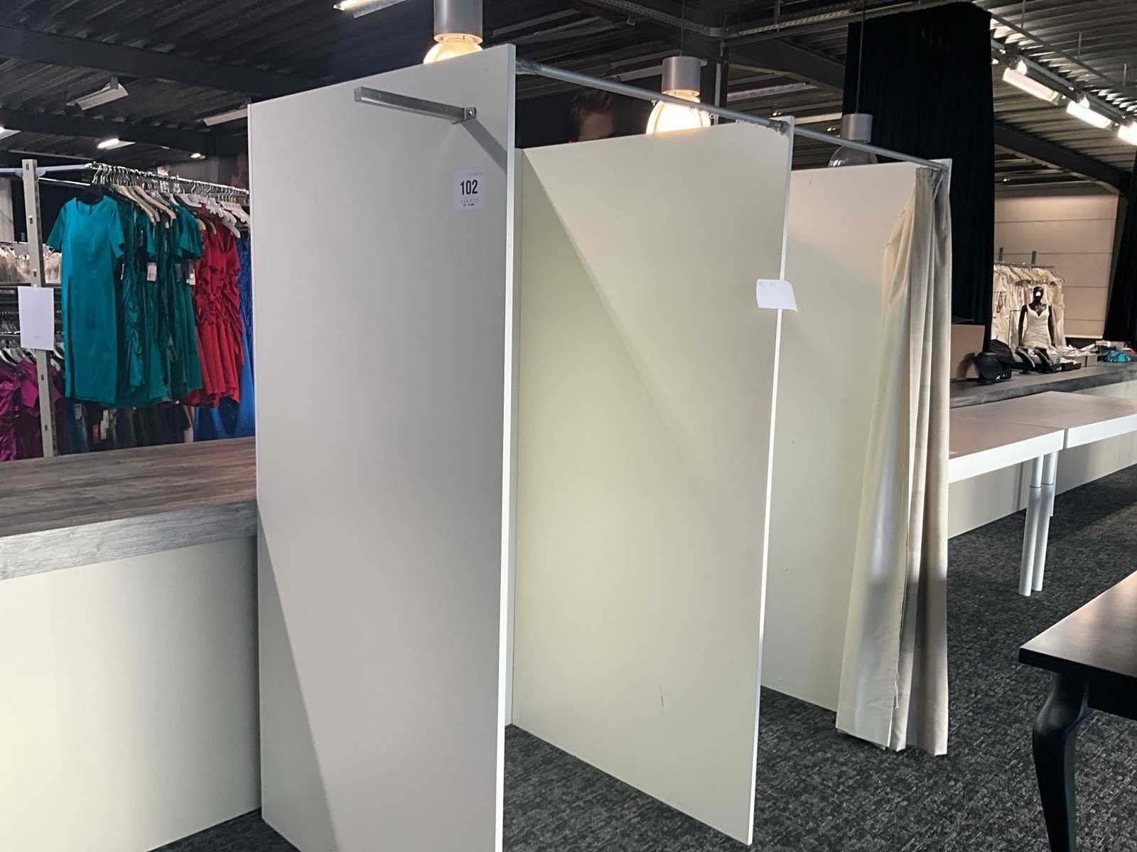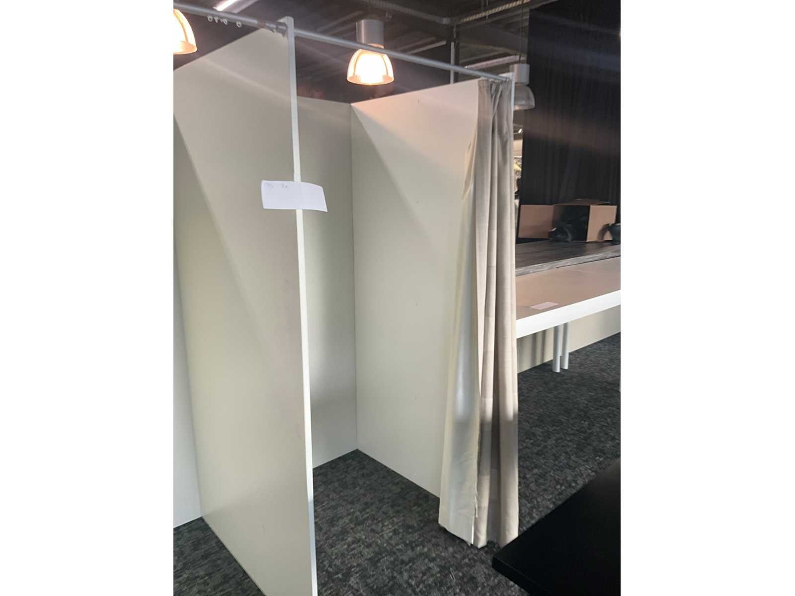 Voorzien van stangen vooraan waarvan slechts 1 met draperie en 2 hangsteunen langs de buitenzijden. Totale afmeting L: 1930mm Totale afmeting Breedte: 1020mm Totale afmeting Hoogte: 2000mm