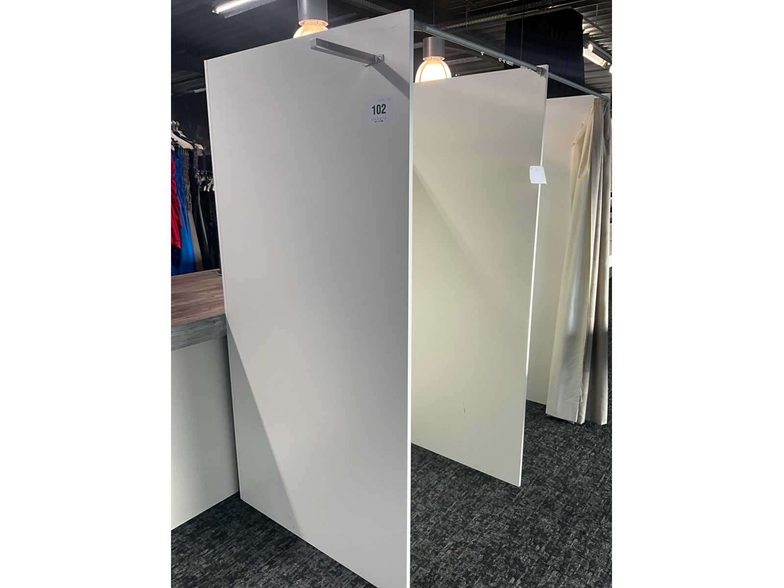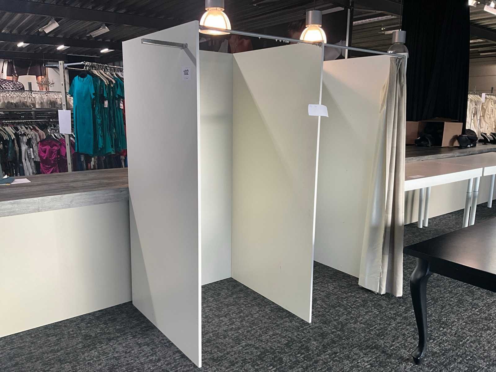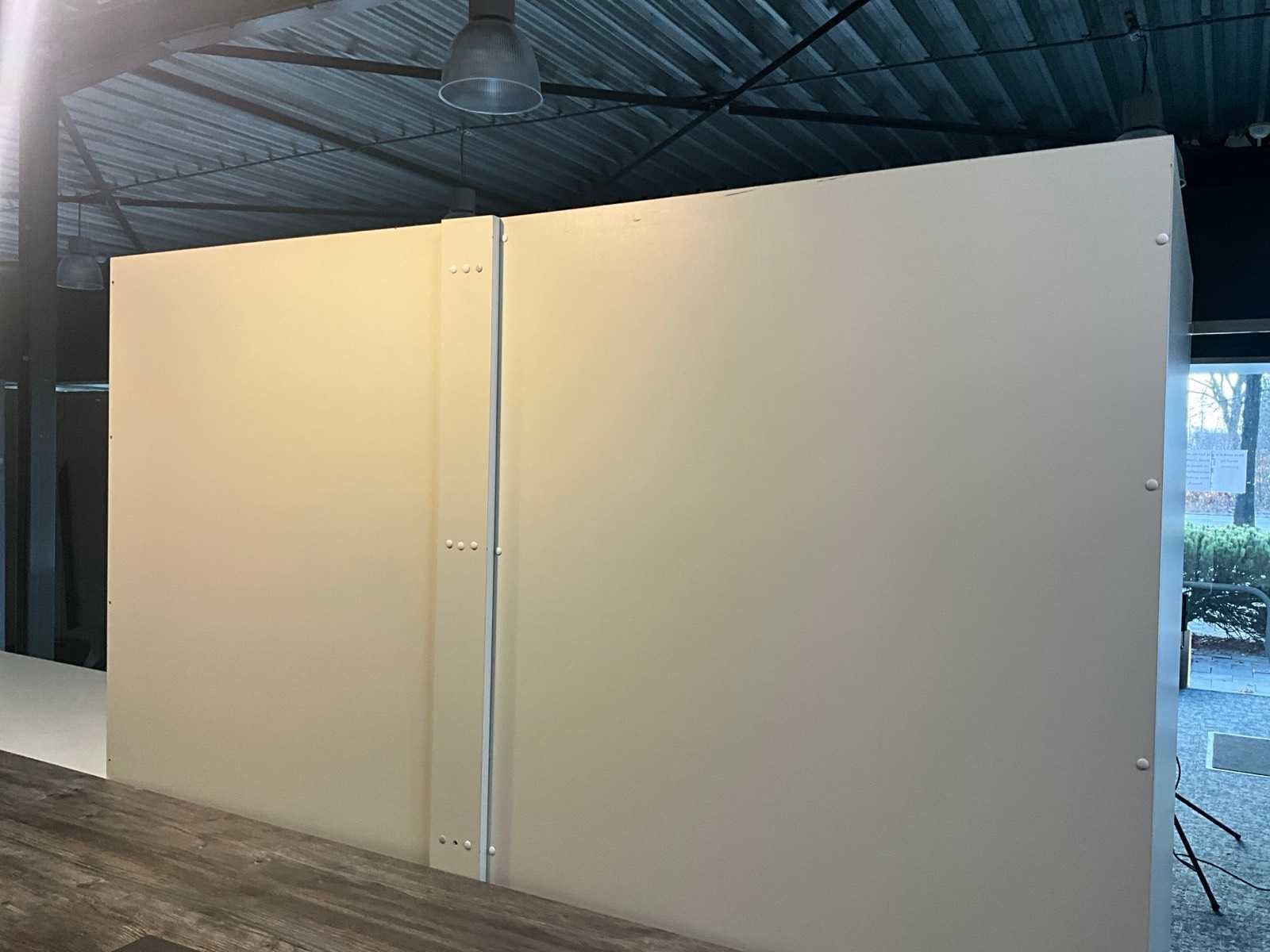 Voorzien van stangen vooraan waarvan slechts 1 met draperie en 2 hangsteunen langs de buitenzijden. Totale afmeting L: 1930mm Totale afmeting Breedte: 1020mm Totale afmeting Hoogte: 2000mm