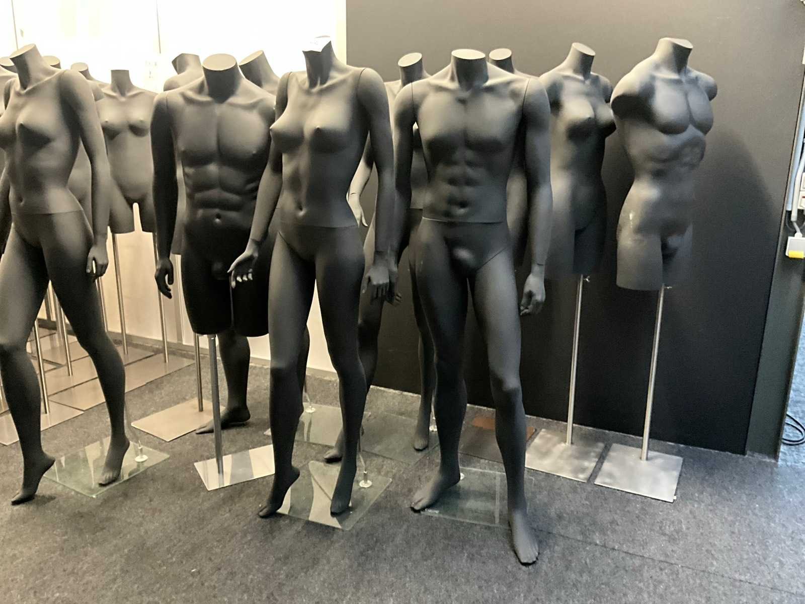Waaronder 5 volledige paspoppen (3x dames en 2x heren) op glazen voet, compleet met 5 diverse bustes op staander. Afgifte volgens aanwijzing.