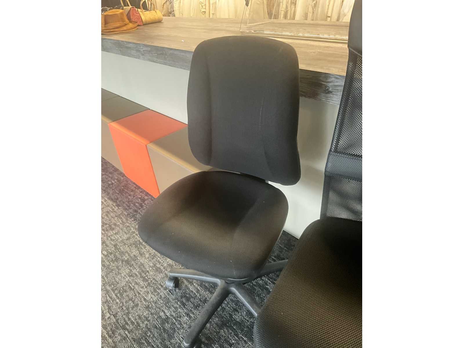 2 diverse bureaustoelen voorzien van stoffen bekleding