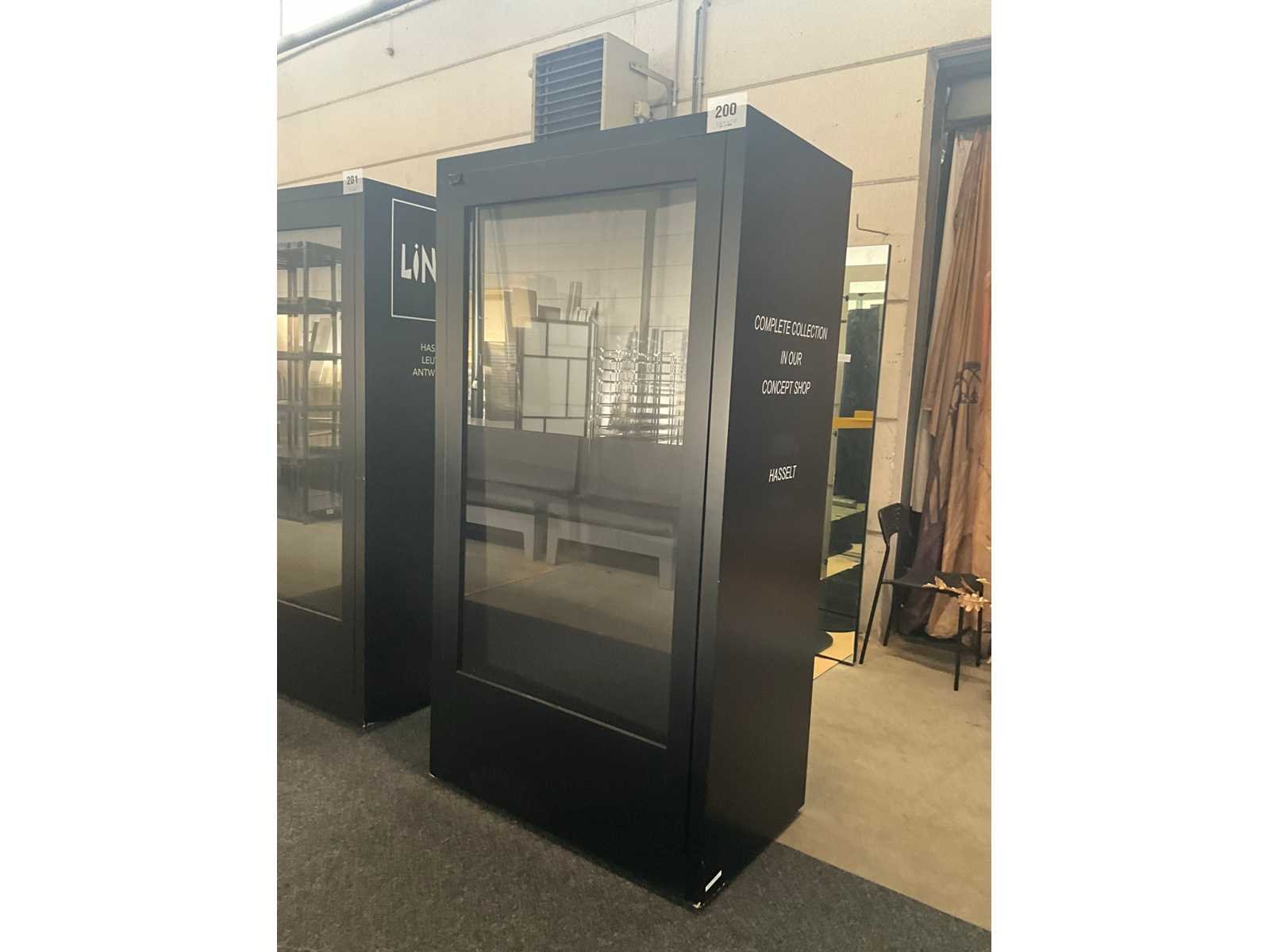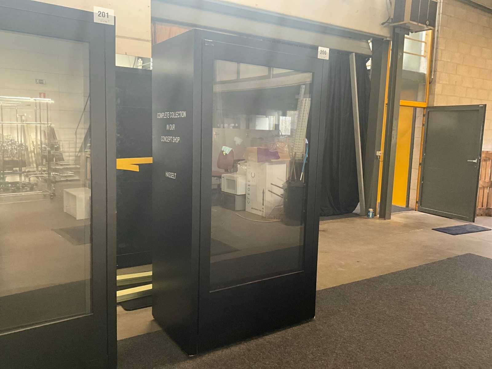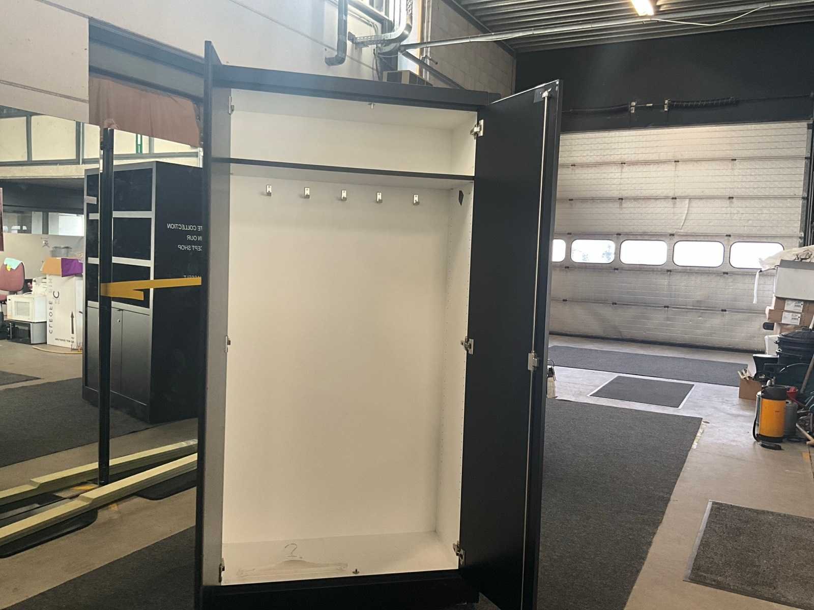 In houten uitvoering, en deur voorzien van plexiglas compleet met televisie SONY type KDL-65W955B. Geen afstandsbediening. Totaalafmetingen in cm uitgedrukt. Met aan achterzijde opbergruimte kast. Lengte: 1050 Breedte: 65 Hoogte: 200