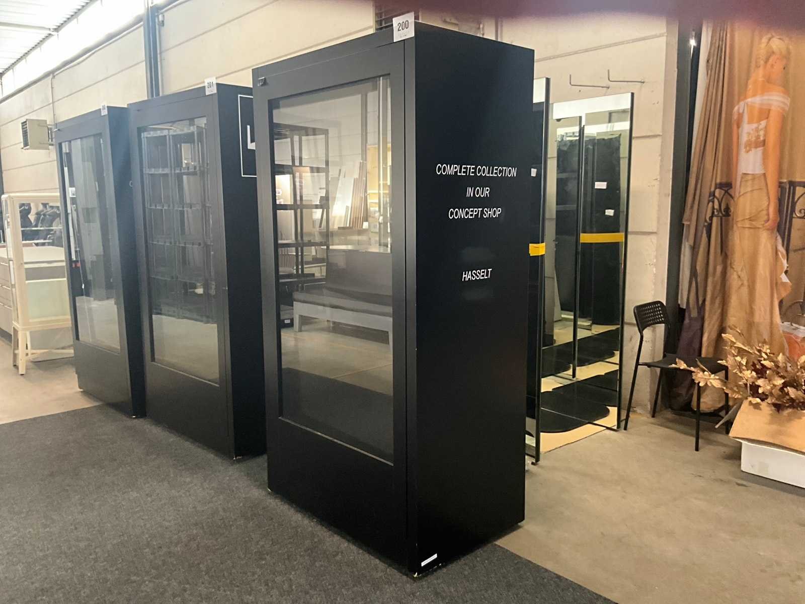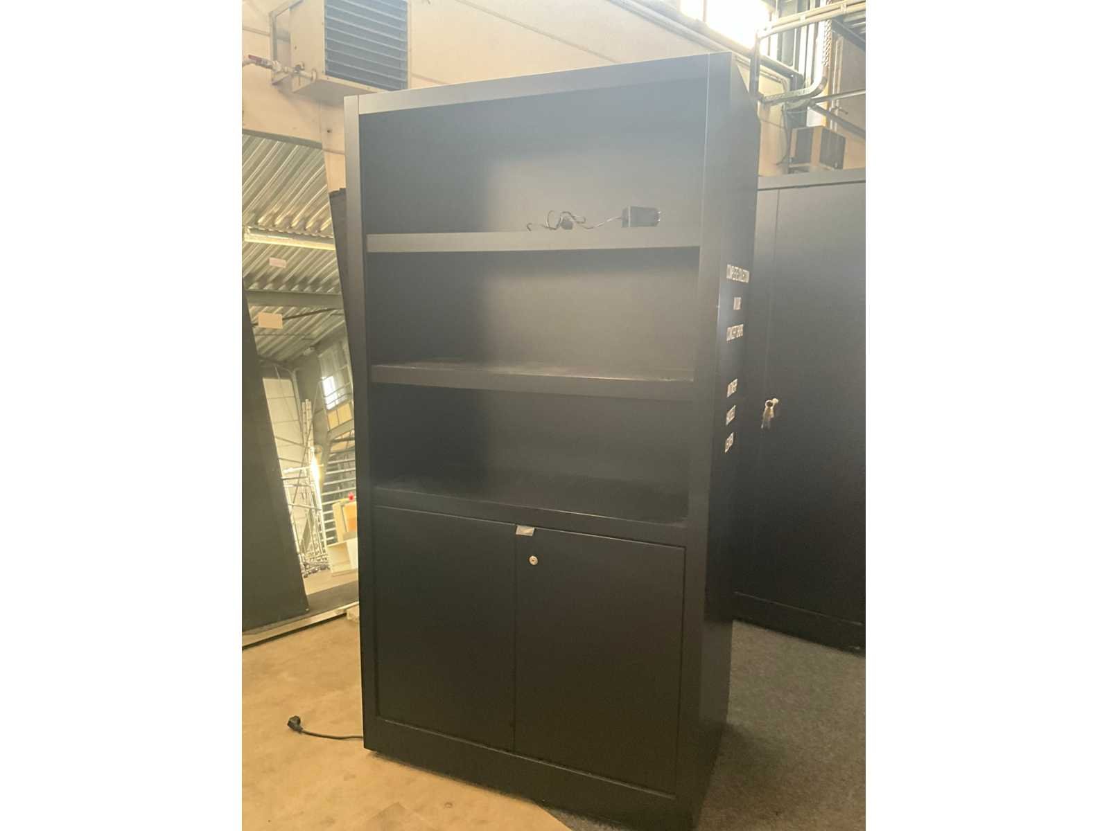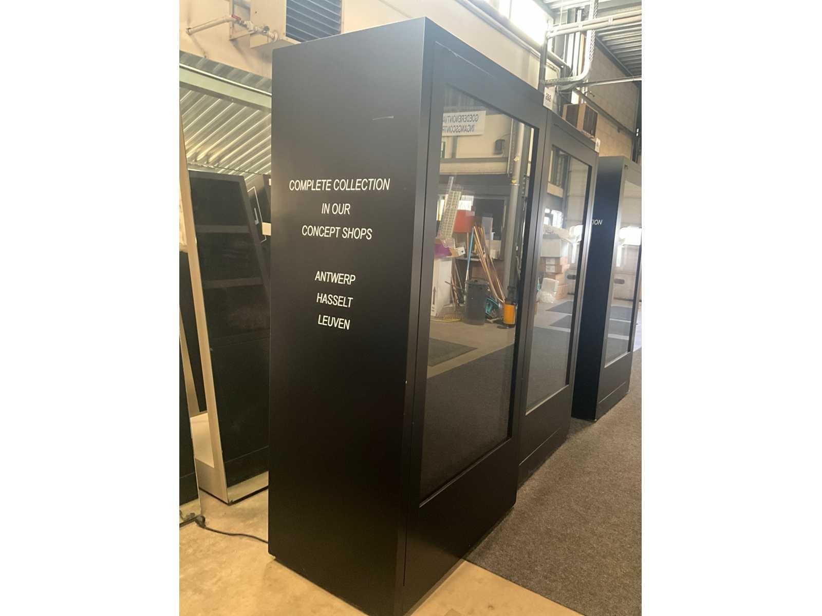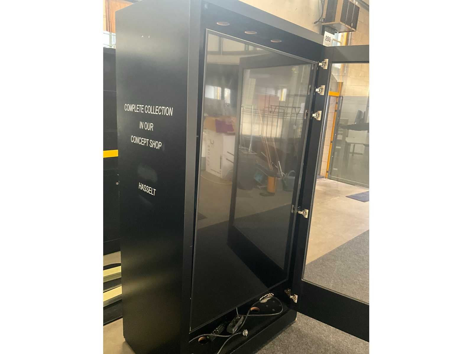 In houten uitvoering, en deur voorzien van plexiglas compleet met televisie SONY type KDL-65W955B. Geen afstandsbediening. Totaalafmetingen in cm uitgedrukt. Met aan achterzijde opbergruimte kast. Lengte: 1050 Breedte: 65 Hoogte: 200