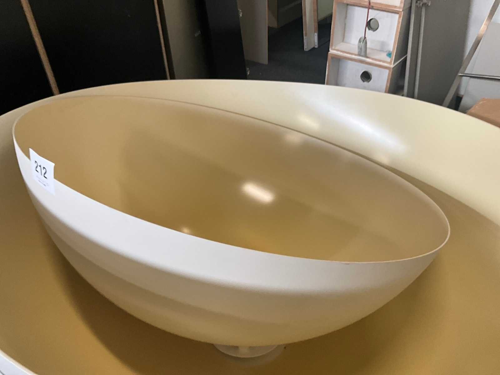 3x plafondverlichting waaronder 2x met 180 cm diameter en 1x met 140 cm diameter (reeds gedemonteerd). Voorzien van lichtpunten. Materiaal: Kunststof