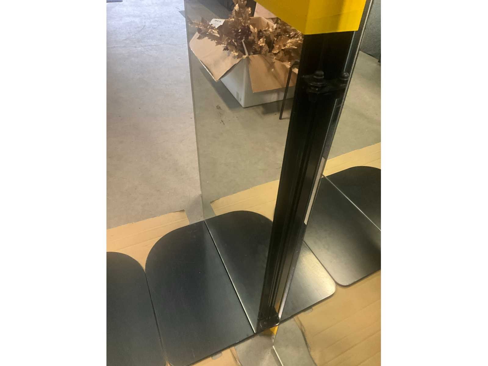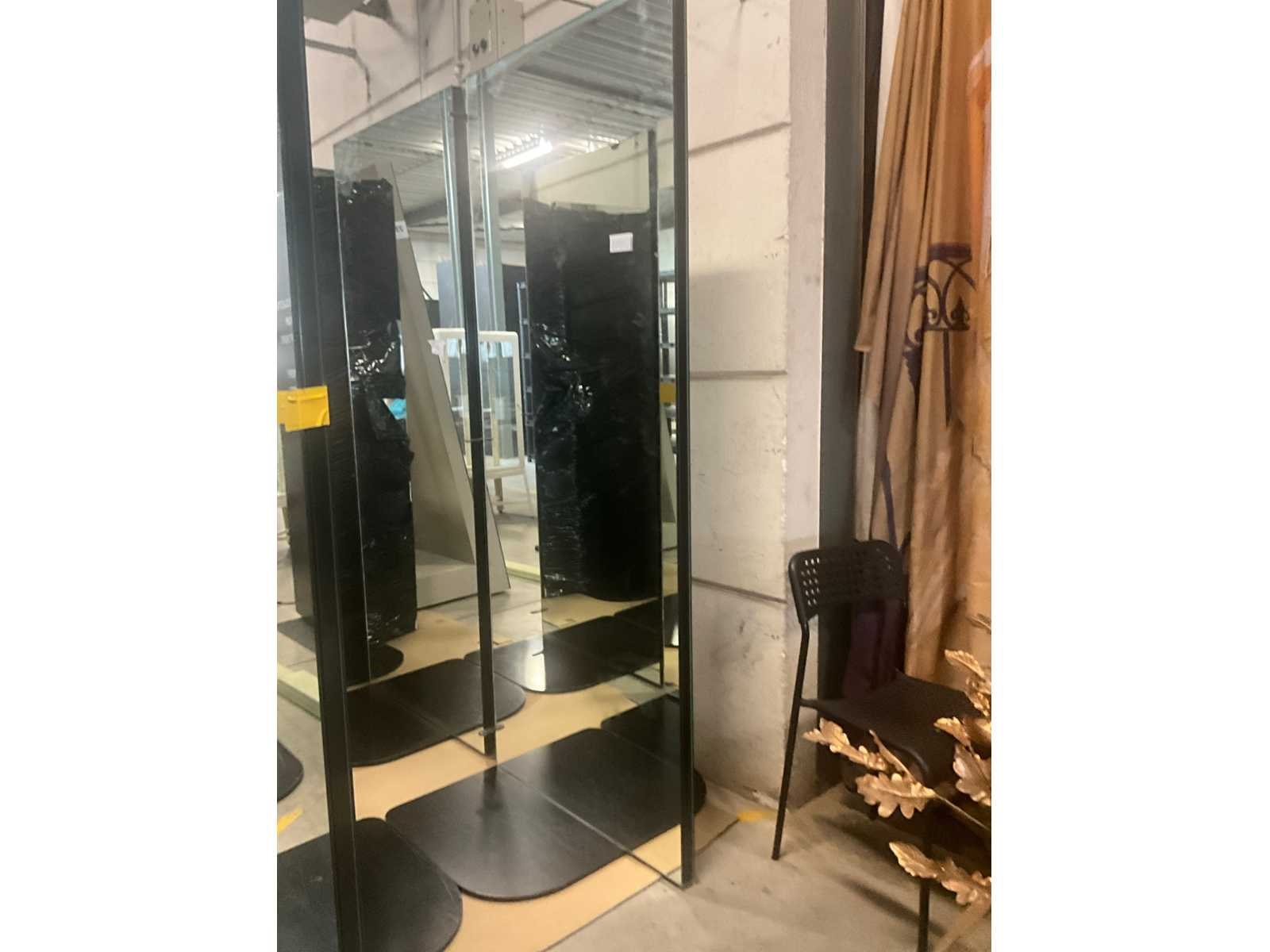 Foto indicatief. Afmetingen voet : 80 x 60 cm. Langs beide zijden voorzien van spiegel en bestaande uit 2 spiegelpanelen, 1x 80 en 1x 60 cm breed, waarvan smal paneel gedemonteerd en dit is roteerbaar. Afmeting b: 800mm Totale afmeting Breedte: 1400mm Totale afmeting Hoogte: 2000mm