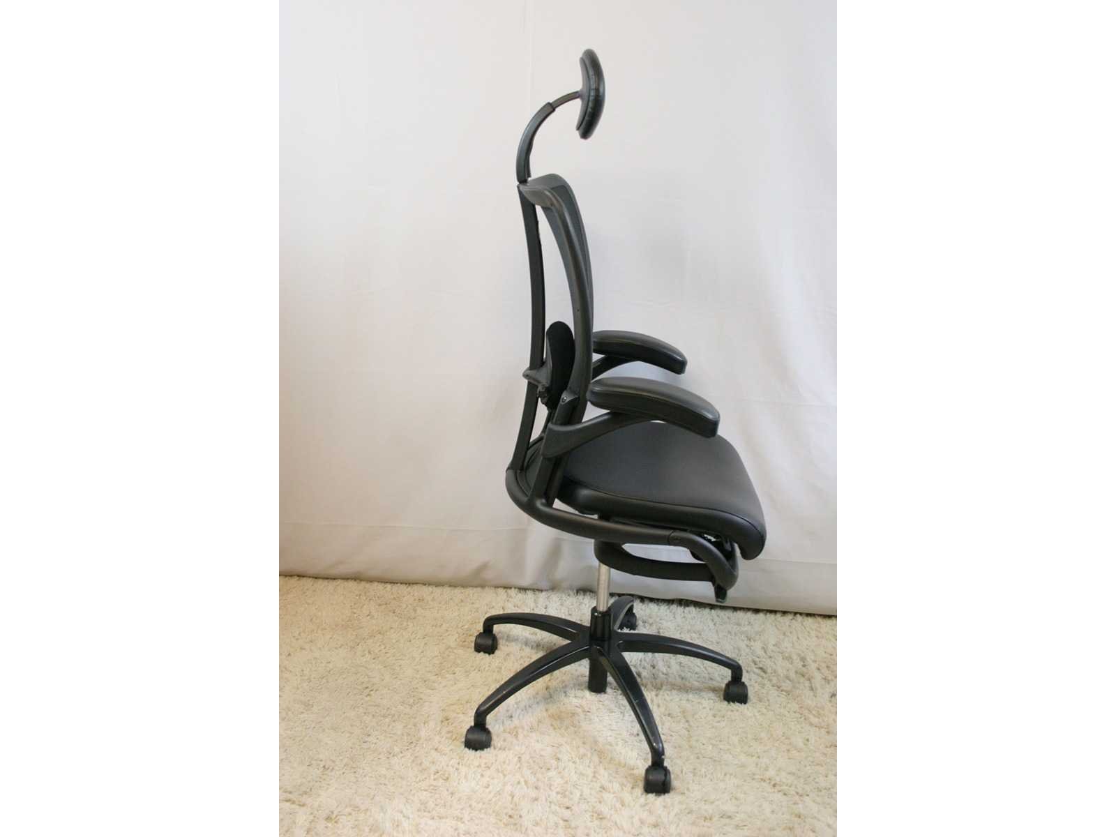 Stervoet in aluminium kleur Zwart voorzien van standaard zwenkwielen, rugleuning bekleed met netweave kleur Zwart, zitting in leder kleur Zwart, in hoogte verstelbaar, verstelbare hoofdsteun, synchrone mechanisme met gewichtsinstelling, instelbare zitdiepte, 4 D armleuningen met zachte opdek bekleed met leder, in hoogte verstelbare rugleuning, verstelbare lendesteun, in goede staat, technisch nazicht en onderhoud gehad, gereinigd Merk: König & Neurath Kleur: Zwart Gewicht: 40kg Breedte: 80cm Hoogte: 120cm Diepte: 80cm Materiaal: Metaal, aluminium, kunststof, stof, leder
