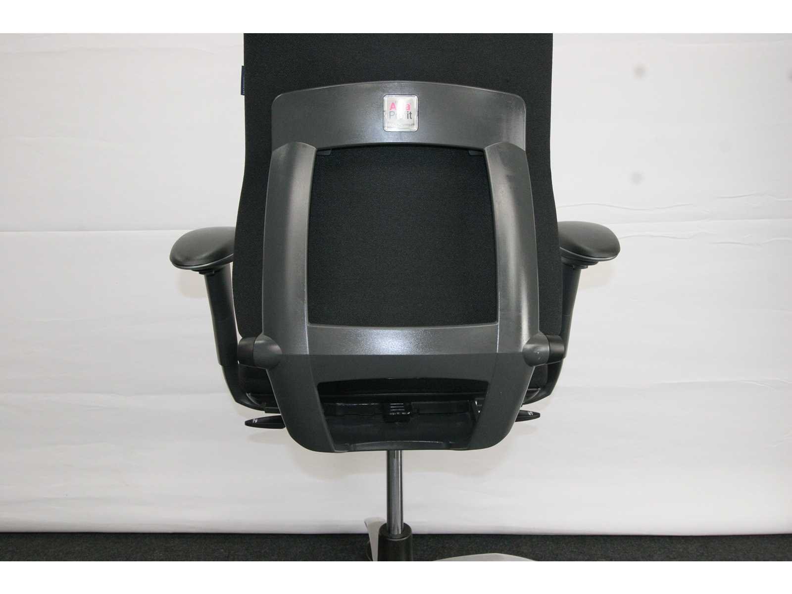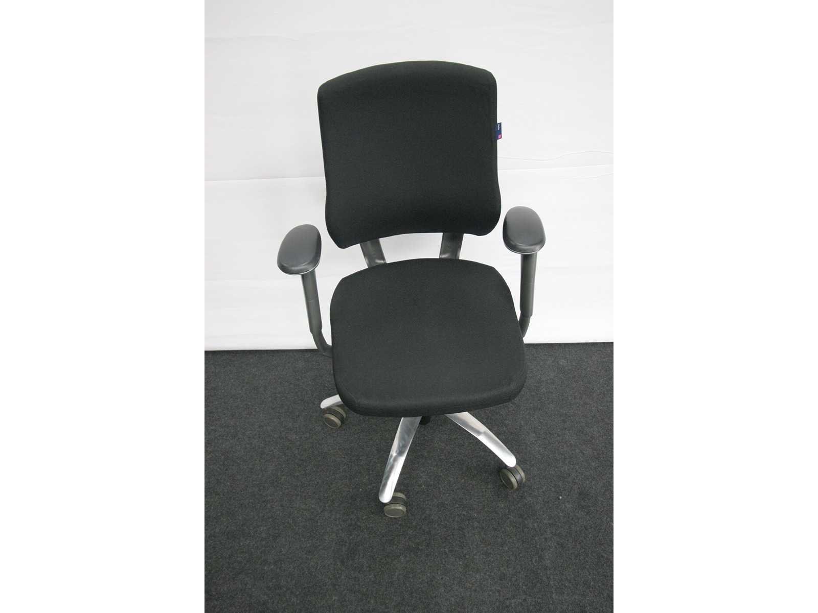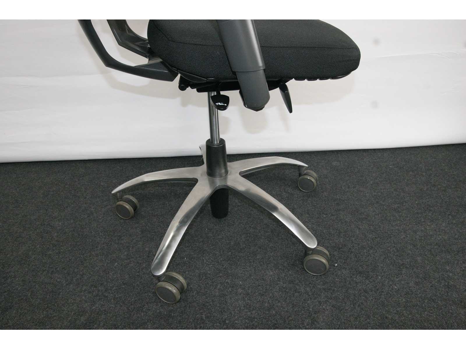 Stervoet in gepolijst aluminium voorzien van PHD zwenkwielen (ook geschikt voor delicate vloeren), bekleding in stof kleur Zwart, in hoogte verstelbaar, synchromechanisme met gewichtsinstelling, verstelbare rugleuning, technisch nazicht en onderhoud gehad, bekleding chemisch gereinigd, lichte gebruikssporen mogelijk, foto's indicatief Merk: BMA Type: AXIA Profit Kleur: Zwart Gewicht: 30kg Breedte: 70cm Hoogte: 100cm Diepte: 70cm Materiaal: Metaal, aluminium, kunststof, stof