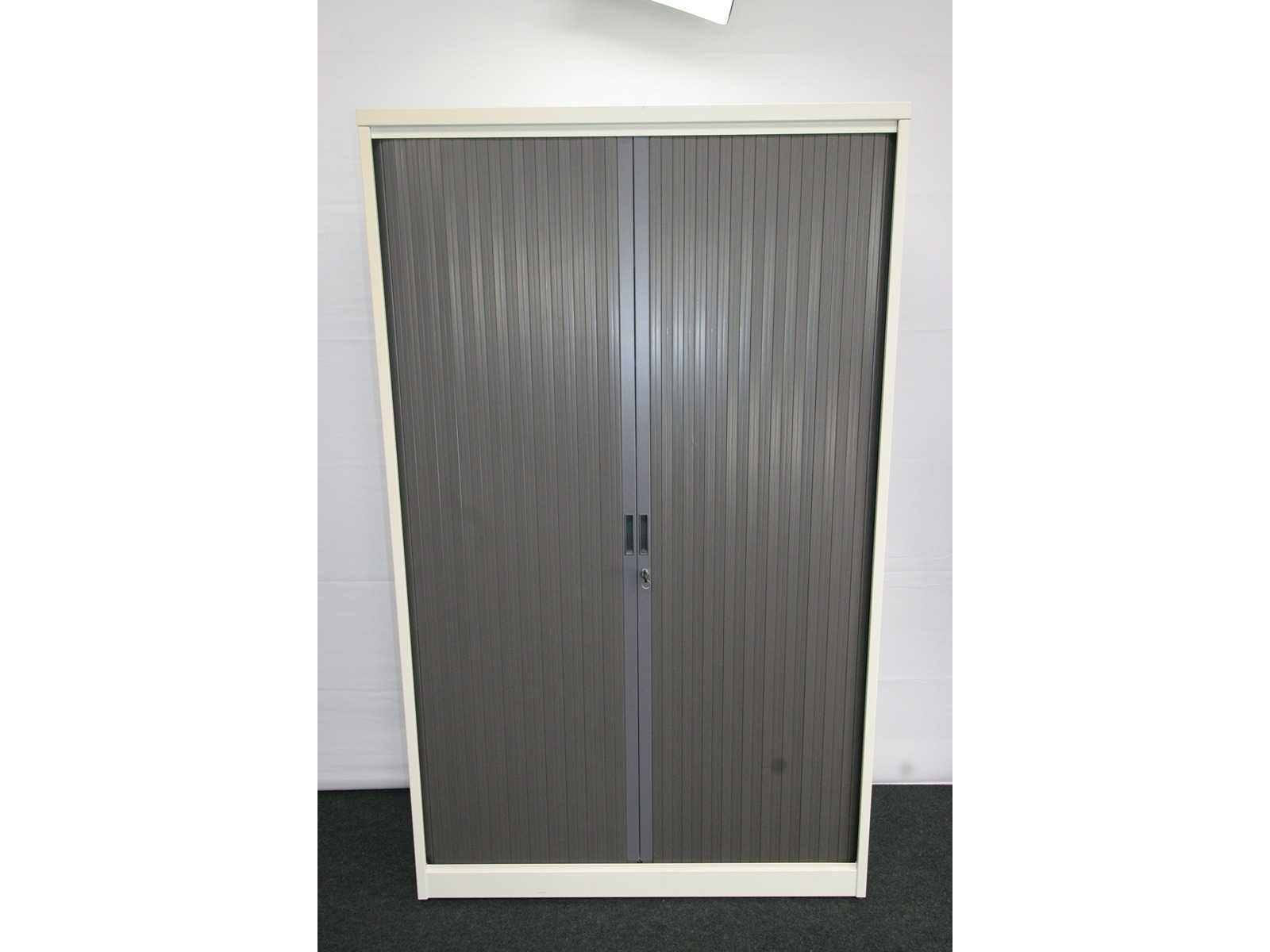 Kast volledig in metaal kleur alu, rolluiken in kunststof kleur antraciet, uitgerust met 4 legplanken, afm. 1980 x 1200 x 470 mm (h x b x d), in goede staat enkel wat verkleuring door UV inwerking; foto's indicatief Merk: Mewaf Kleur: Beige - Antaciet Gewicht: 80kg Breedte: 120cm Hoogte: 198cm Materiaal: Metaal, kunststof Diepte: 47cm Aantal laden: 4