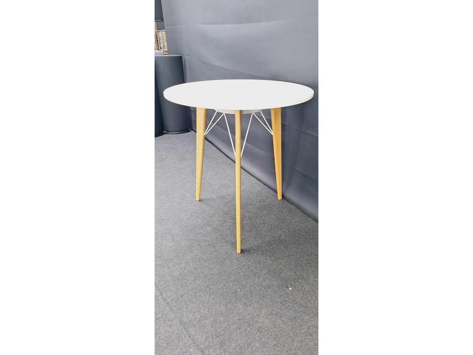 Onderstel in hout kleur eik, werkblad in melamine kleur wit, toonzaalmodel, in zeer goede staat Merk: Bene Kleur: Hout-Wit Gewicht: 40kg Lengte: 100cm Breedte: 100cm Hoogte: 107cm Materiaal: Metaal, hout, kunststof, melamine