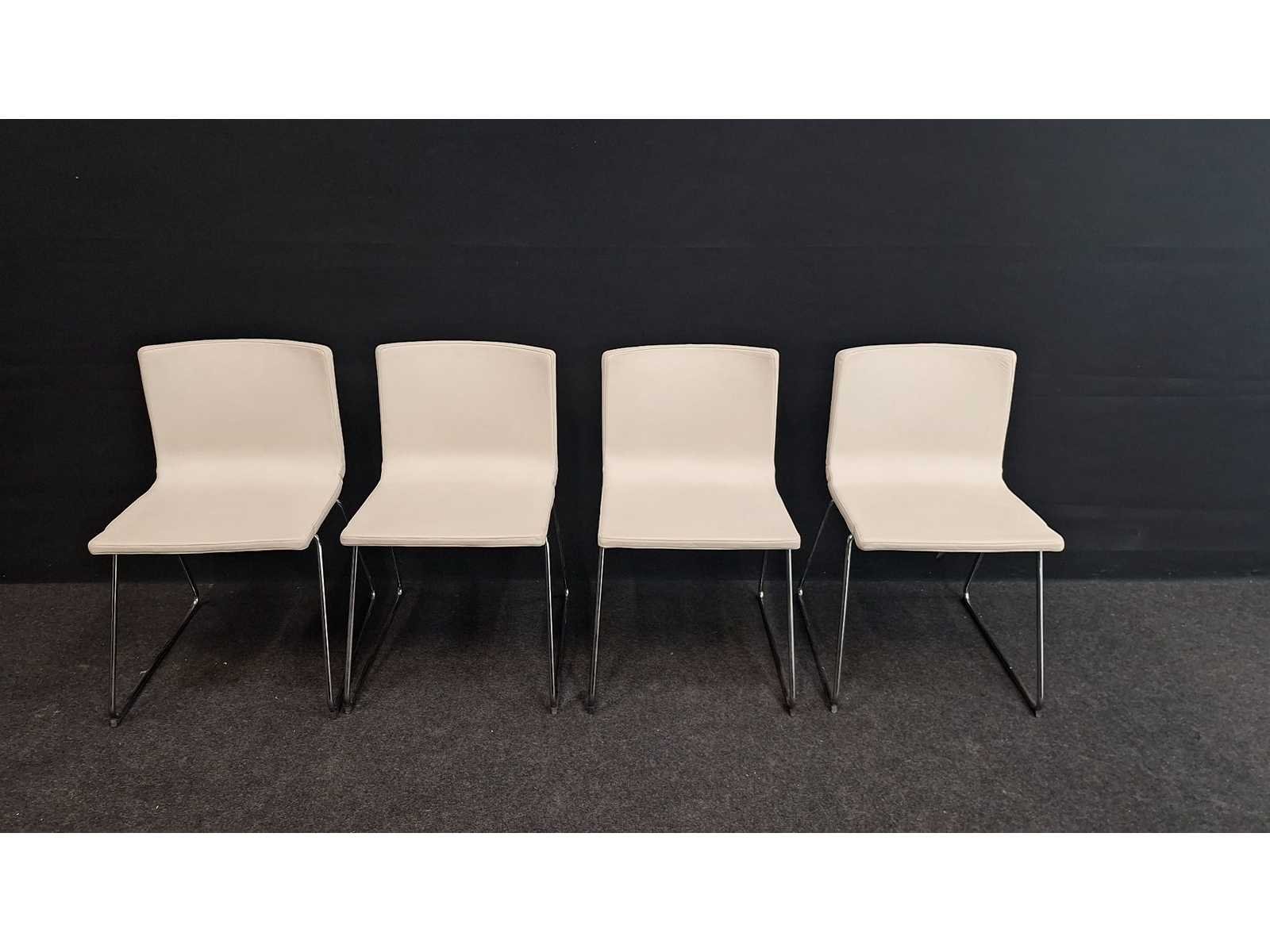 Sledeonderstel in draadstaal hoogglans verchroomd, bekleding in kunstleder kleur Beige, in goede staat Merk: Ikea Kleur: chroom - beige Materiaal: metaal, kunststof, kunstleder Zithoogte: 43cm Hoogte: 80cm Breedte: 45cm Diepte: 45cm Gewicht: 60kg