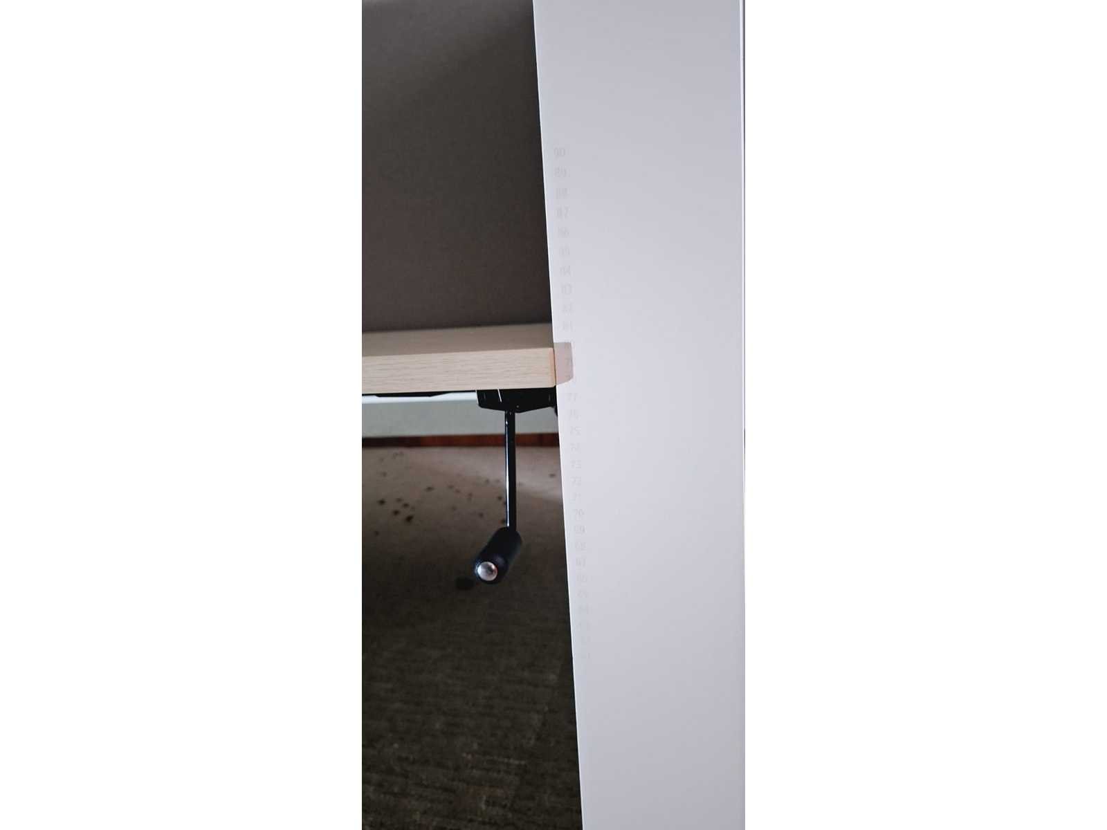 Akoestische systeemwanden in metaal afgewerkt met stof kleuren Wit/Bruin/Mokka, werkbladen in melamine kleur Lichte Eik met zwengel in hoogte verstelbaar tussen 620 - 820 mm, in goede staat Merk: Ahrend Kleur: Wit-Bruin Gewicht: 150kg Lengte: 170cm Breedte: 182cm Hoogte: 130cm Materiaal: Metaal, kunststof, hout, melamine, stof