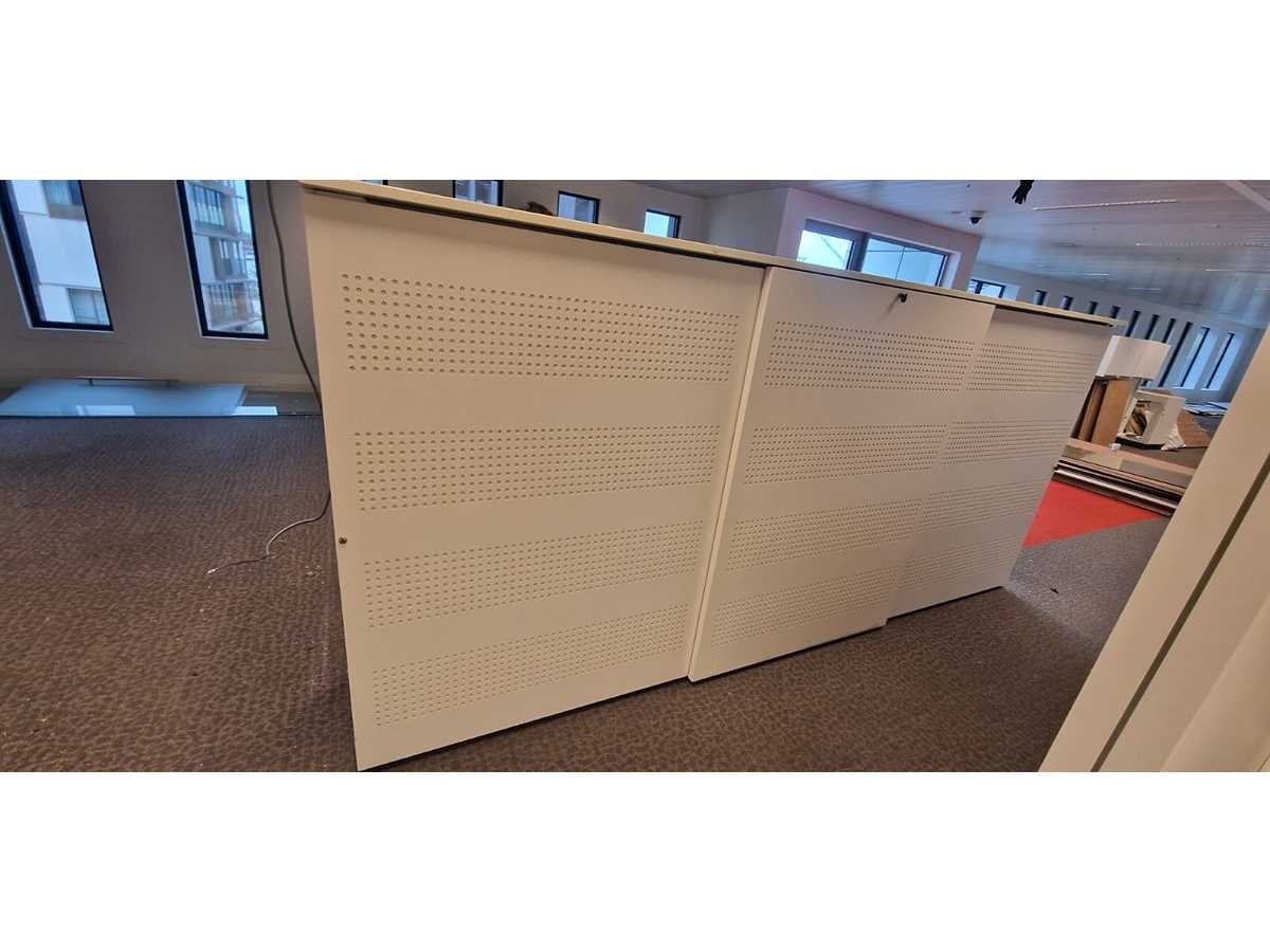 Kast volledig in metaal kleur Wit, schuifdeuren in metaal kleur Wit met akoestische schuimvulling kleur Zwart, top in melamine kleur Wit, gebruikssporen mogelijk, lichte verkleuring door UV inwerking, foto's indicatief. Merk: Robberechts Kleur: Wit Gewicht: 225kg Breedte: 360cm Hoogte: 160cm Materiaal: Metaal, kunststof, hout, melamine Diepte: 47cm Aantal laden: 6